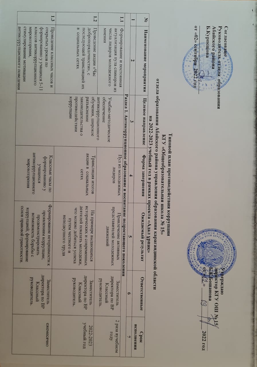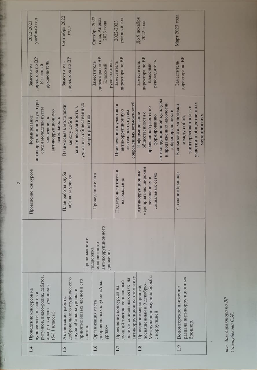 План мероприятий противодействия коррупции"Адал ұрпақ" страница 2 |