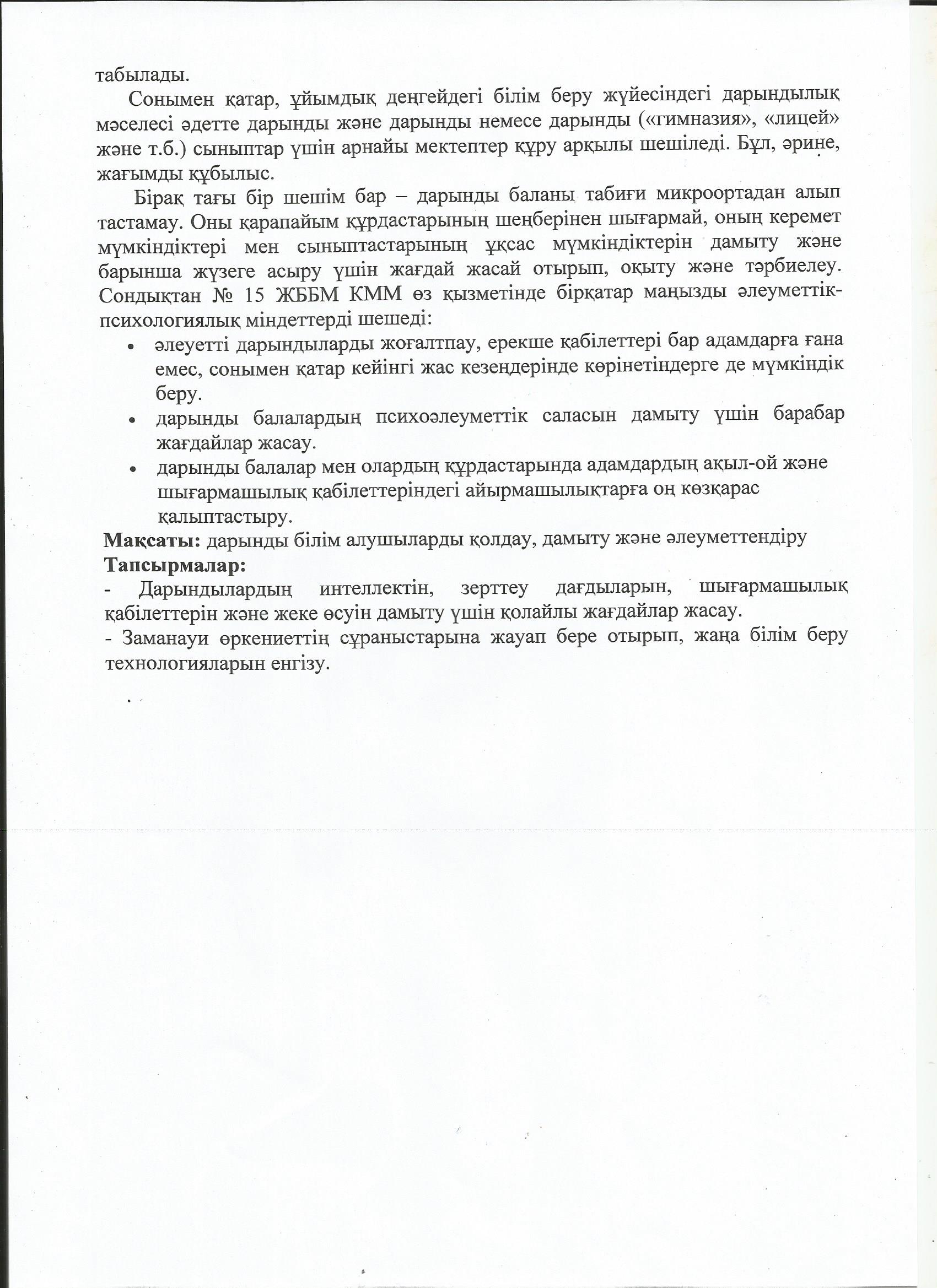 2023-2024 оқу жылына арналған Қарабас кентінің №15 ЖББМ КММ Талантты және дарынды оқушылармен жұмыс жоспары 2 бет