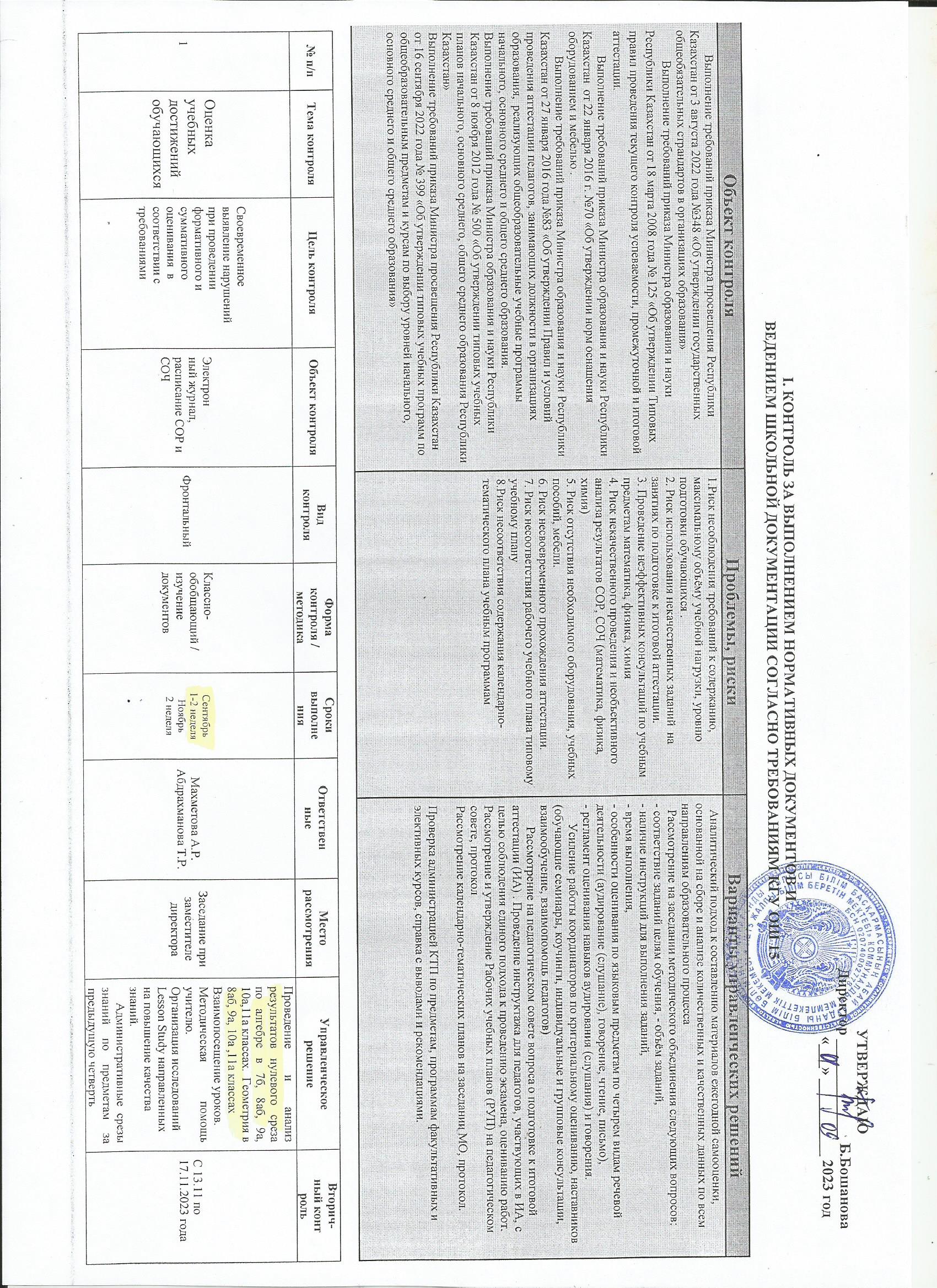 Дәреже: Внутришкольный контроль