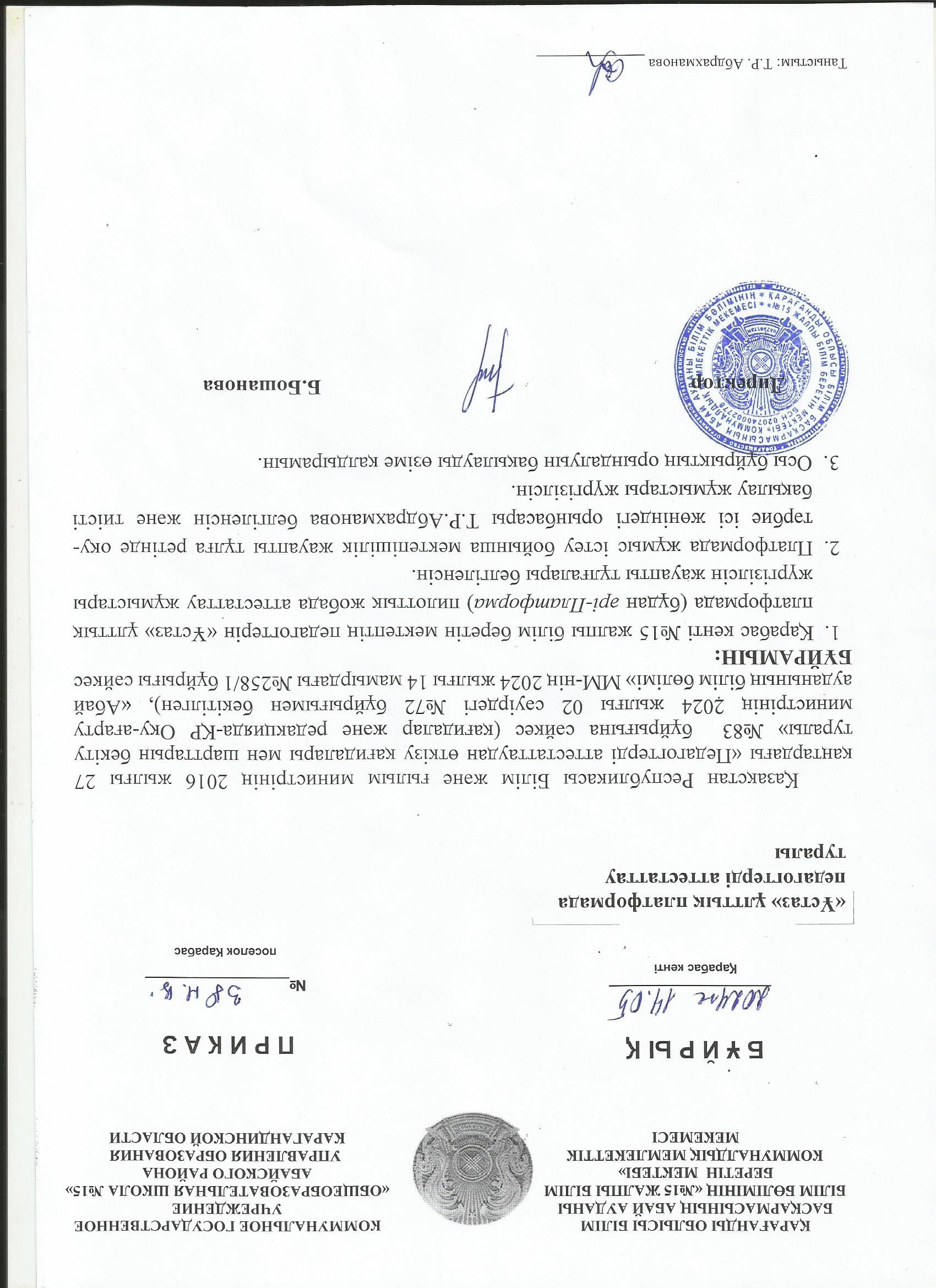№ 34 Бұйрық "ЖББМ №15" 10.05.2024 жылпедагогтерді аттестаттау туралы |