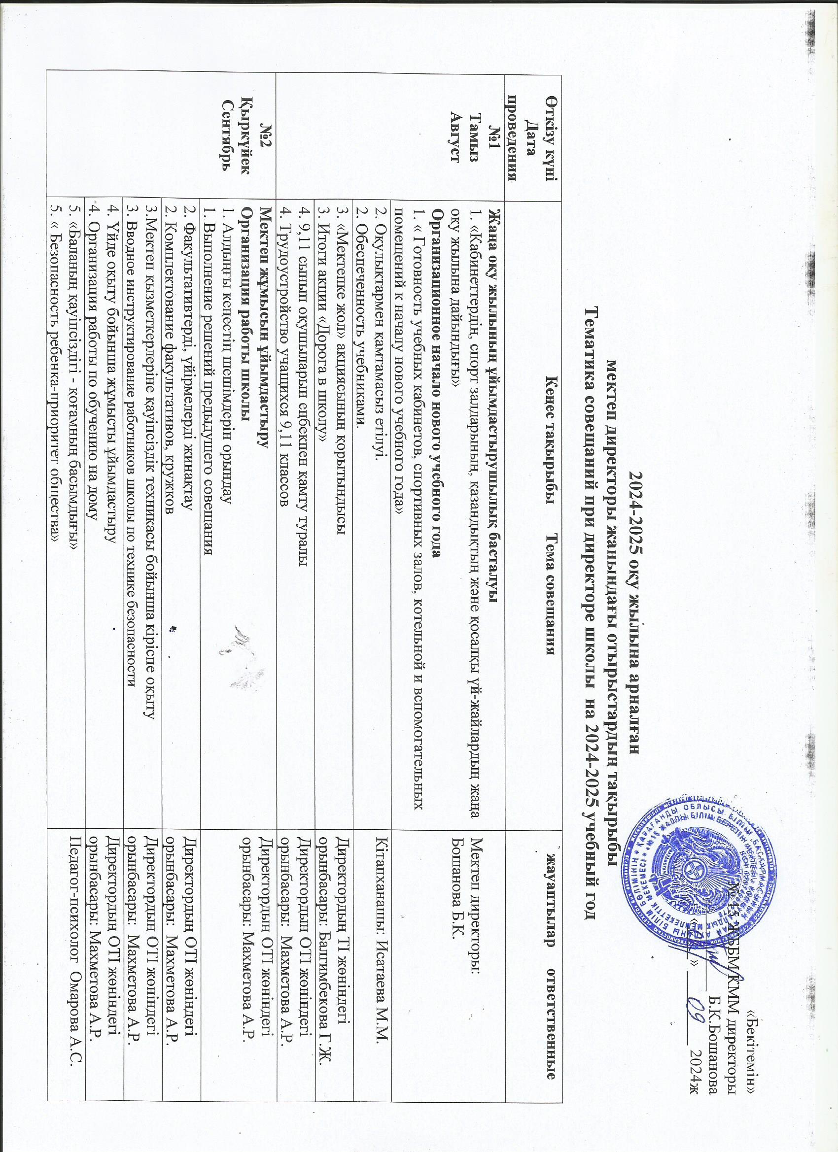 Тематика совещаний при директоре школы на 2024-2025 учебный год
