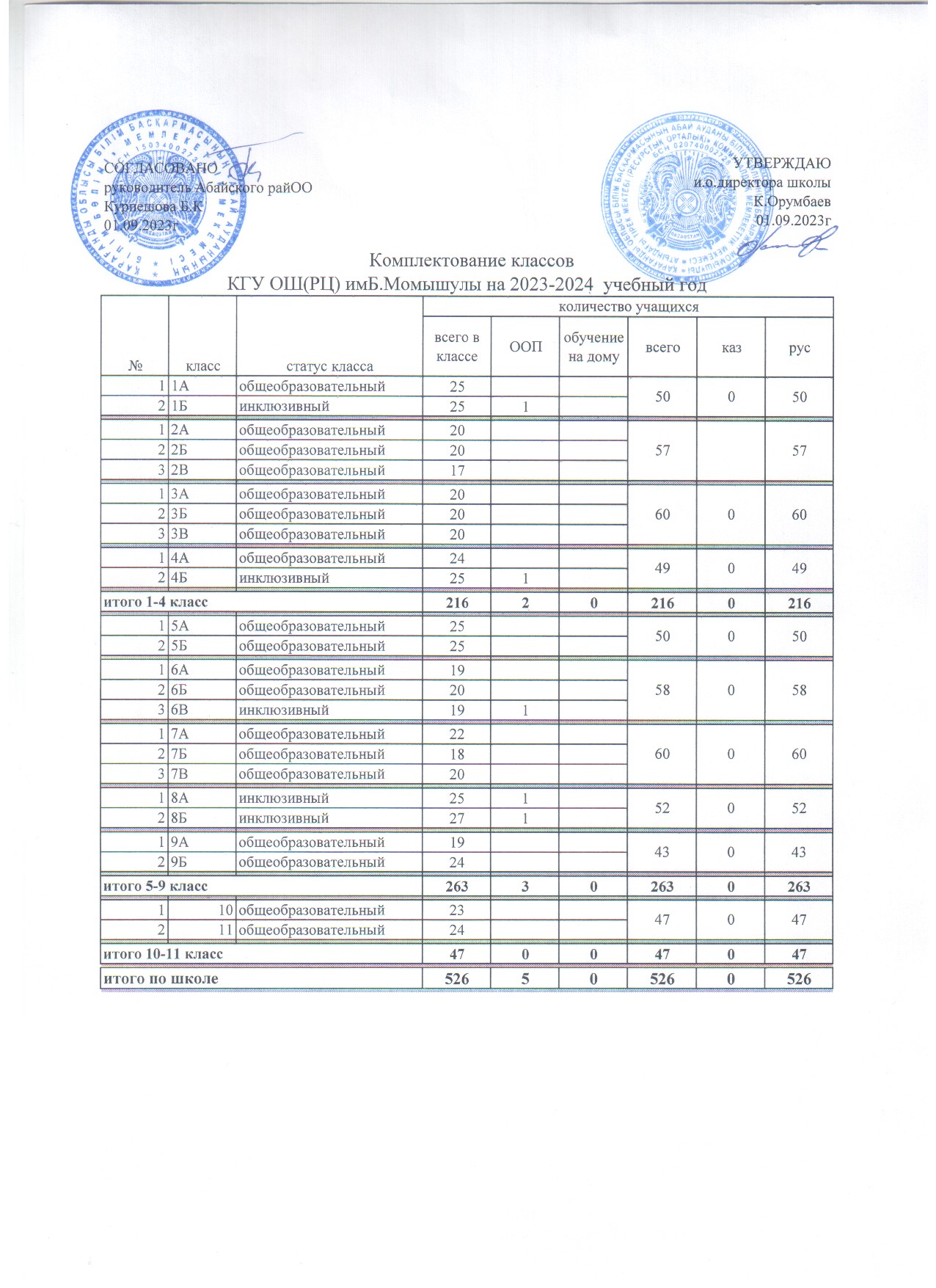 Комплектование классов 2023-2024 уч.год. |