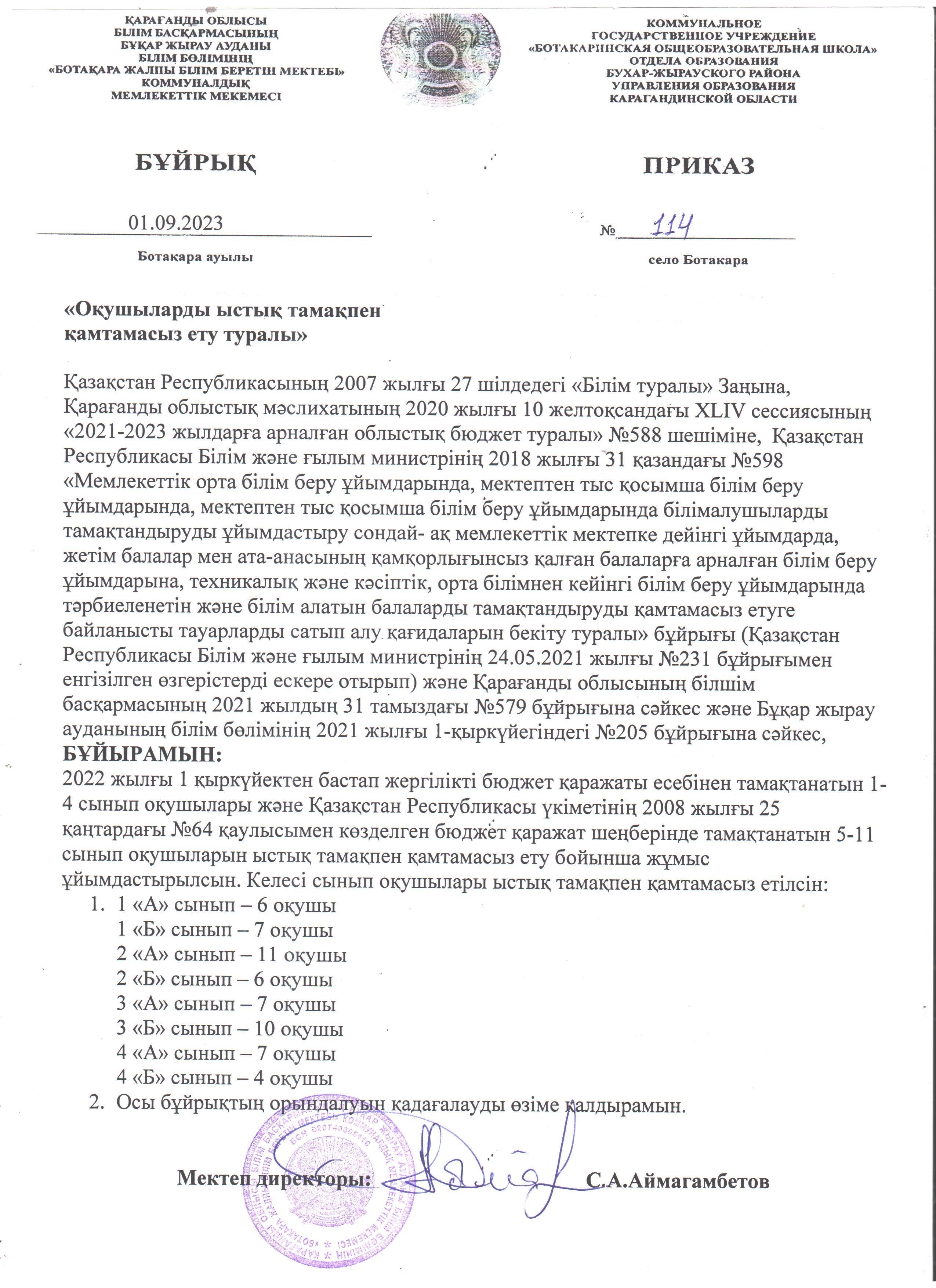 Оқушыларды ыстық тамақпен қамтамасыз ету туралы бұйрықОқушыларды ыстық тамақпен қамтамасыз ету туралы бұйрық |