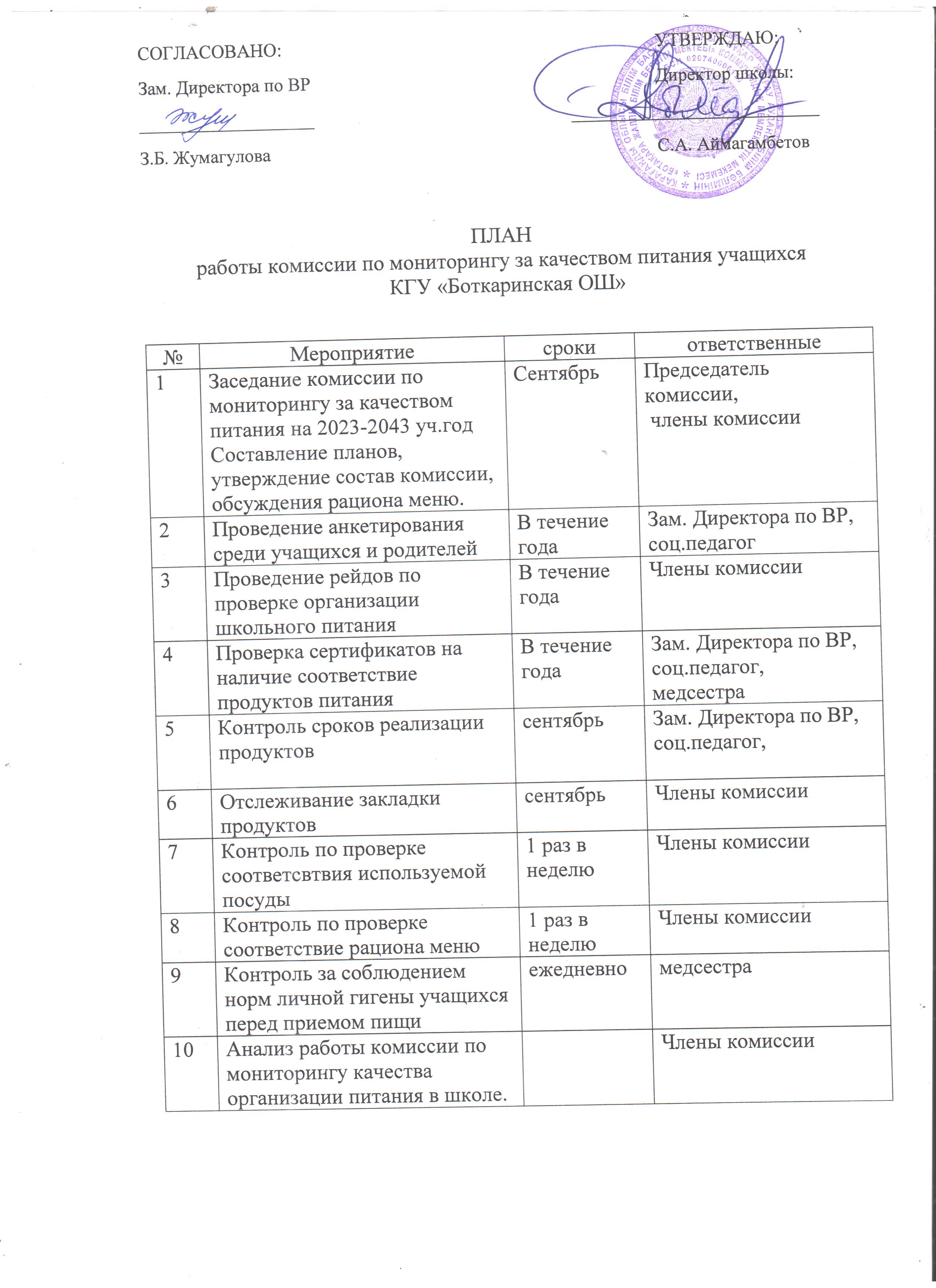 План работы комиссии по мониторингу за качеством питанияПлан работы комиссии по мониторингу за качеством питания |