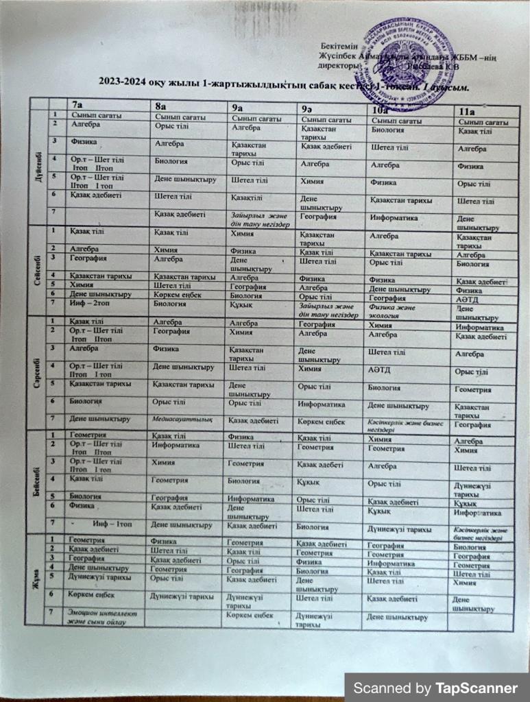 "Жүсіпбек Аймауытұлы атындағы ЖББМ" КММ Сабақ кестесі. |