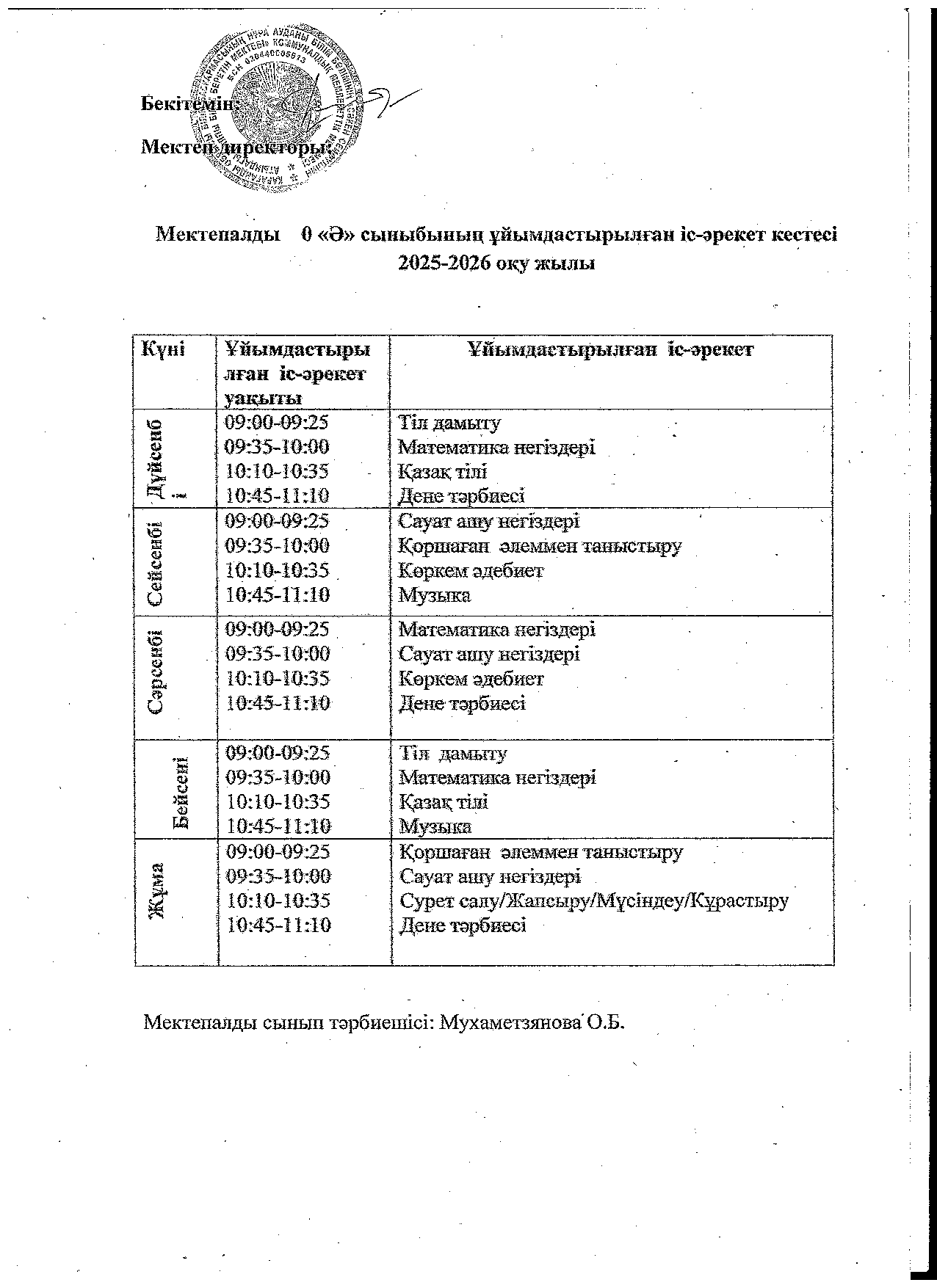 Мектеп алды даярлық тобының ұйымдастырылған іс-ірекет кестесі қазақ тобы 2024-2025 оқу жылы. |