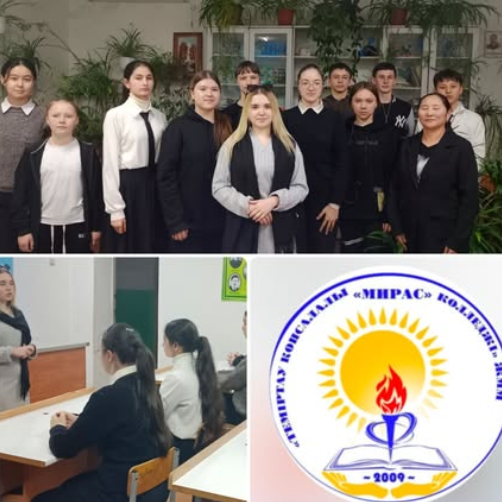 профориентацияВ рамках мероприятий по проекту "Пед.класс" прошла встреча с выпускницей КГУ "ОШ имени Жамбыла "с Карагайлы Кленюшиной Викторией. Виктория студентка многопрофильного колледжа "Мирас". В будущем учитель начальных классов. |