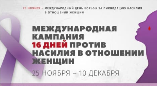 «16 дней активных действий против гендерного насилия» — это ежегодная международная кампания, которая начинается 25 ноября, в Международный день борьбы за ликвидацию насилия в отношении женщин и продолжается до 10 декабря.. Кампания была основана активистами в первом Институте глобального лидерства женщин в 1991 году и продолжает ежегодно координироваться Центром глобального лидерства женщин. Она используется в качестве организационной стратегии отдельными лицами и организациями во всем мире для призыва к предотвращению и искоренению насилия в отношении женщин и девочек. |