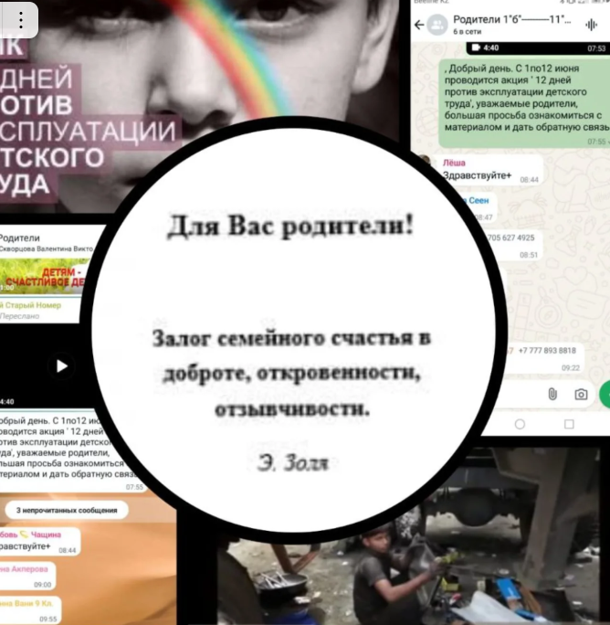 4 июня 2025 г. в рамках реализации профилактических мероприятий (НИК) "12 дней борьбы против эксплуатации детского труда" психологом Кленюшиной Е.В. проведена работа (посредством мессенжера WatsApp) с родителями по проблеме наихудших форм детского труда и профилактике торговли людьми. #ник2025_09 #ұан2025_09