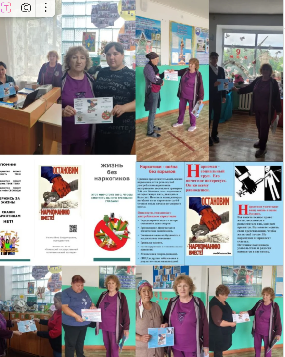 НИКВ рамках месячника, приуроченного к Международному дню борьбы с наркоманией, была организована раздача памяток и информационных буклетов о вреде наркотических веществ и мерах их профилактики. Памятки были вручены работникам технической службы школы, сотрудникам мини-центра и представителям администрации. Мероприятие направлено на повышение осведомлённости и формирование негативного отношения к наркотикам. |