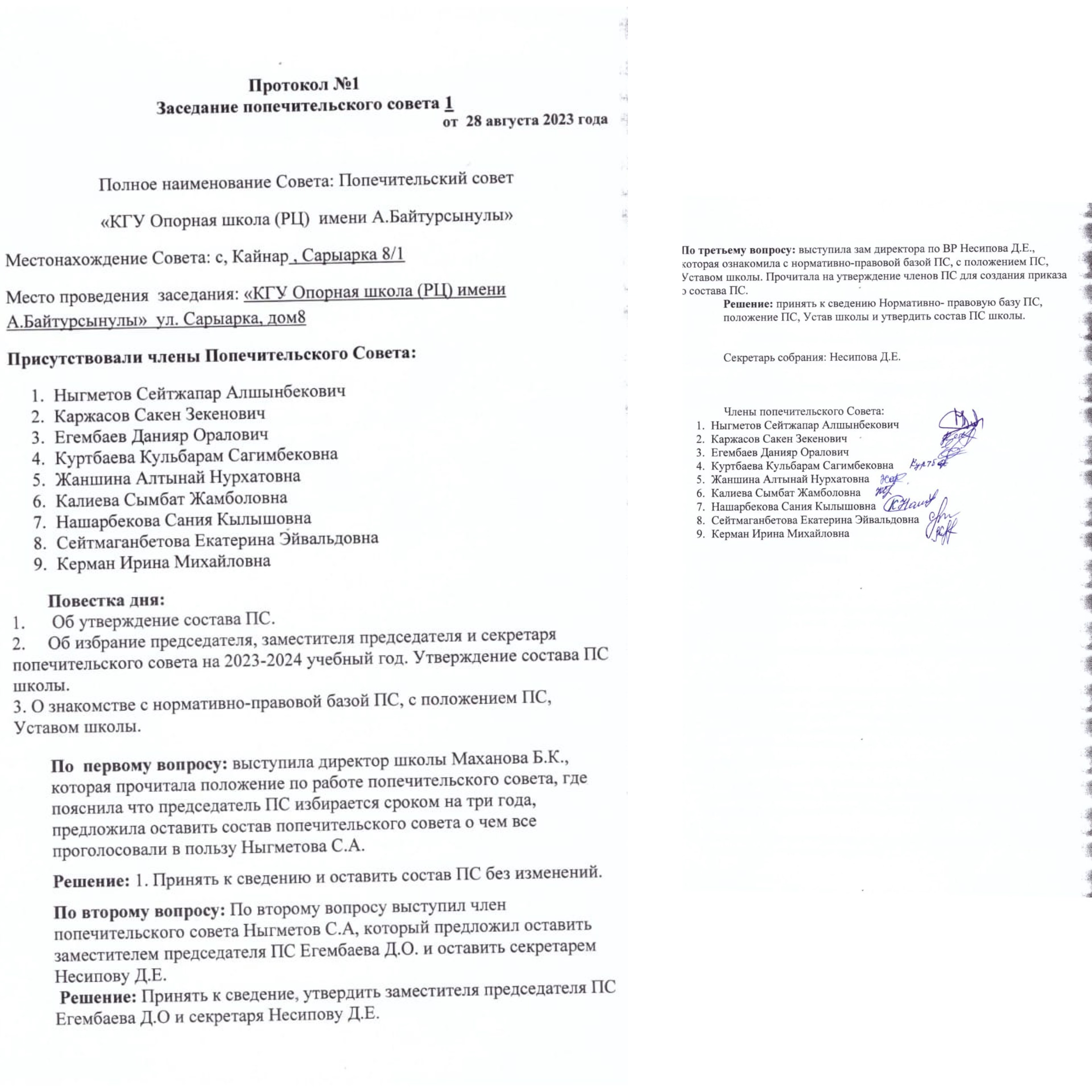 Хаттама 1Заеседание ПС |
