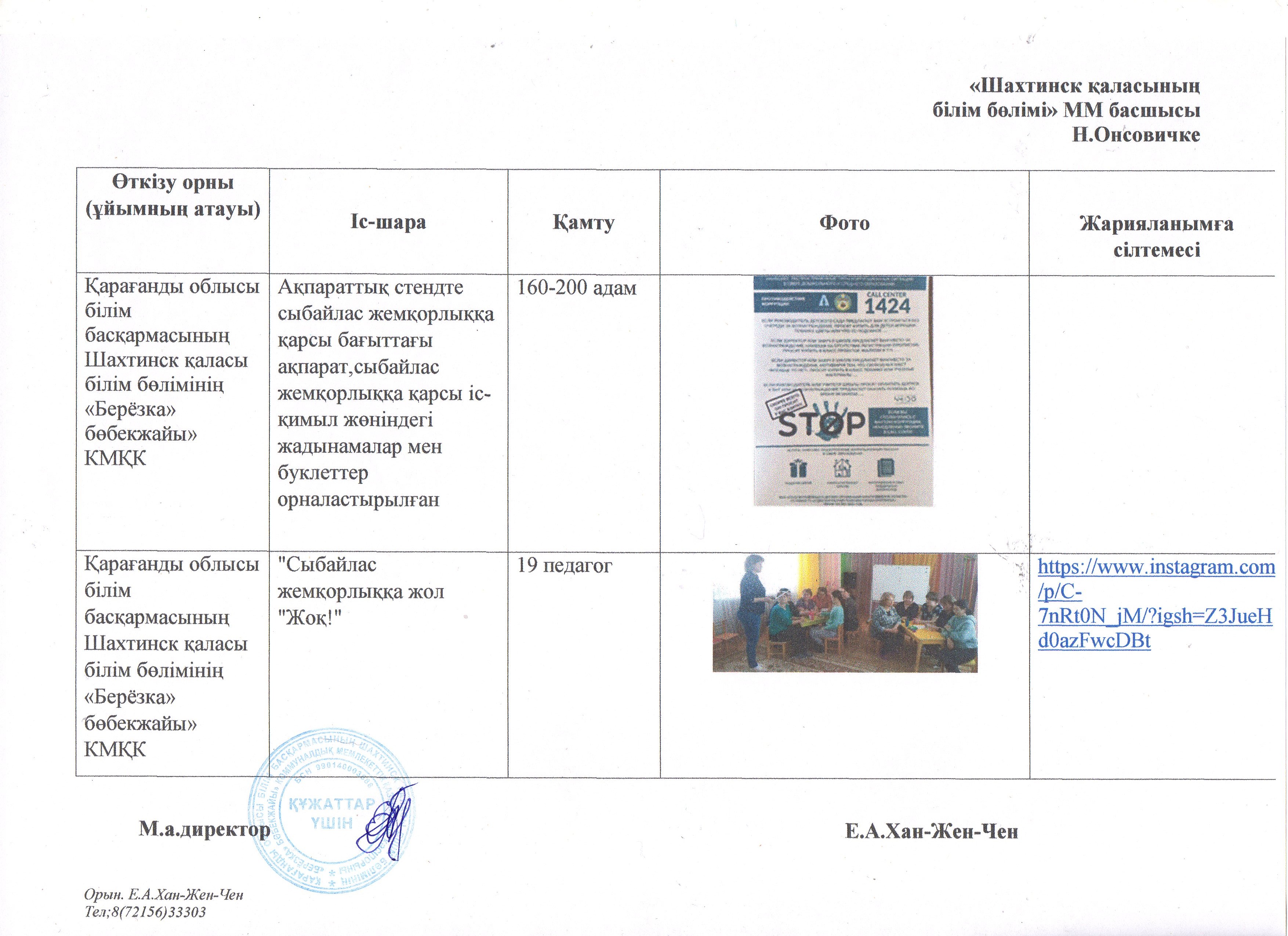 План мероприятий по реализации Антикоррупционной стратегии Республики Казахстан на 2015 – 2025 годы и противодействию коррупции в КГКП «Ясли – сад «Березка»
