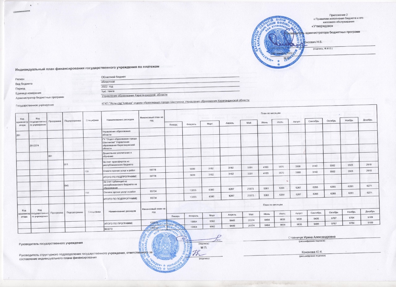 План финансированияИндивидуальный план финансирования государственного учреждения по платежам на 2022 год |