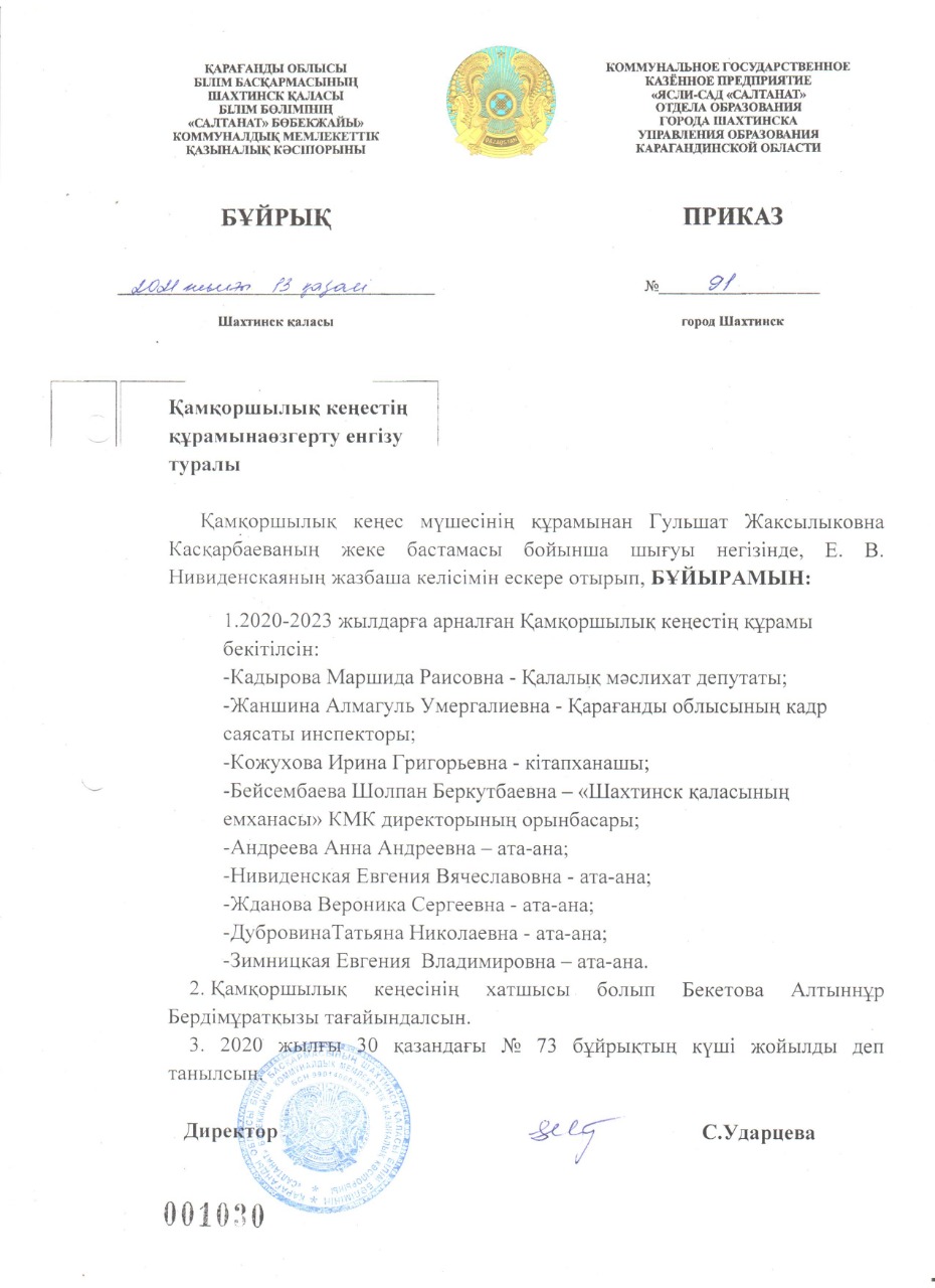 Заседания попечительского совета КГКП «Ясли-сад «Салтанат» отдела образования города Шахтинска управления образования Карагандинской области