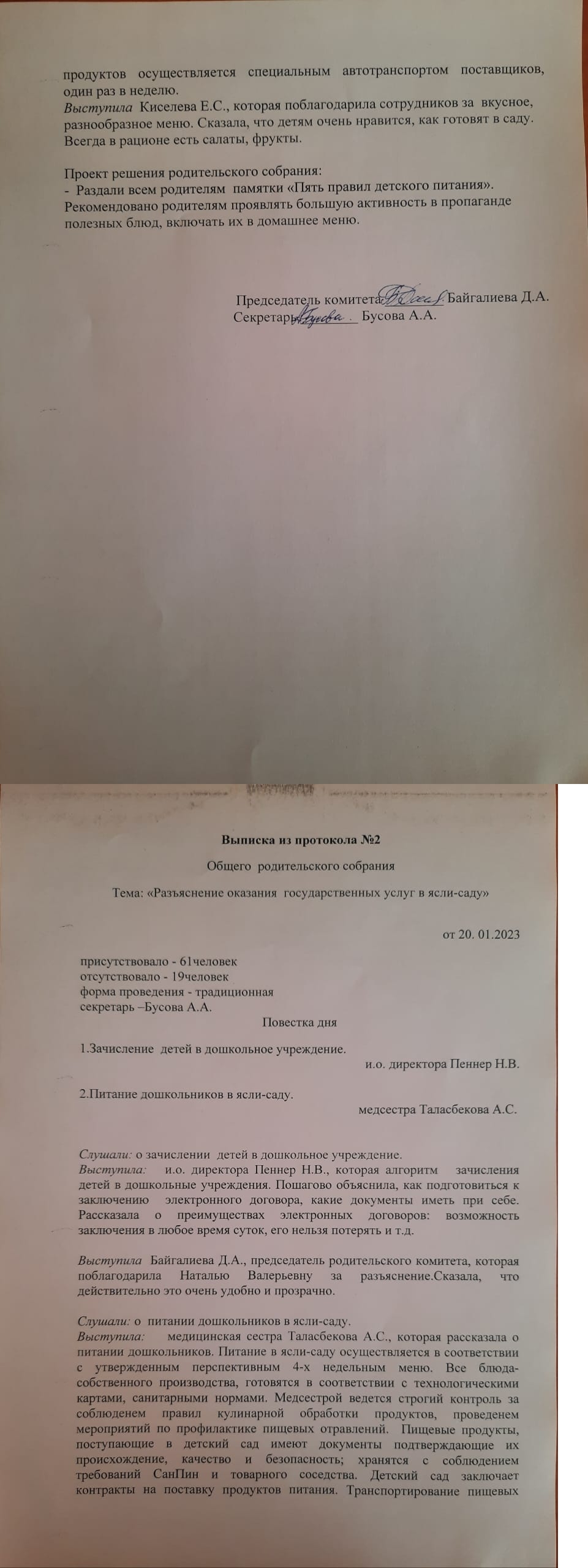 Выписка из протокола общего родительского собрания "Разъяснение оказания государственных услуг в ясли-саду"