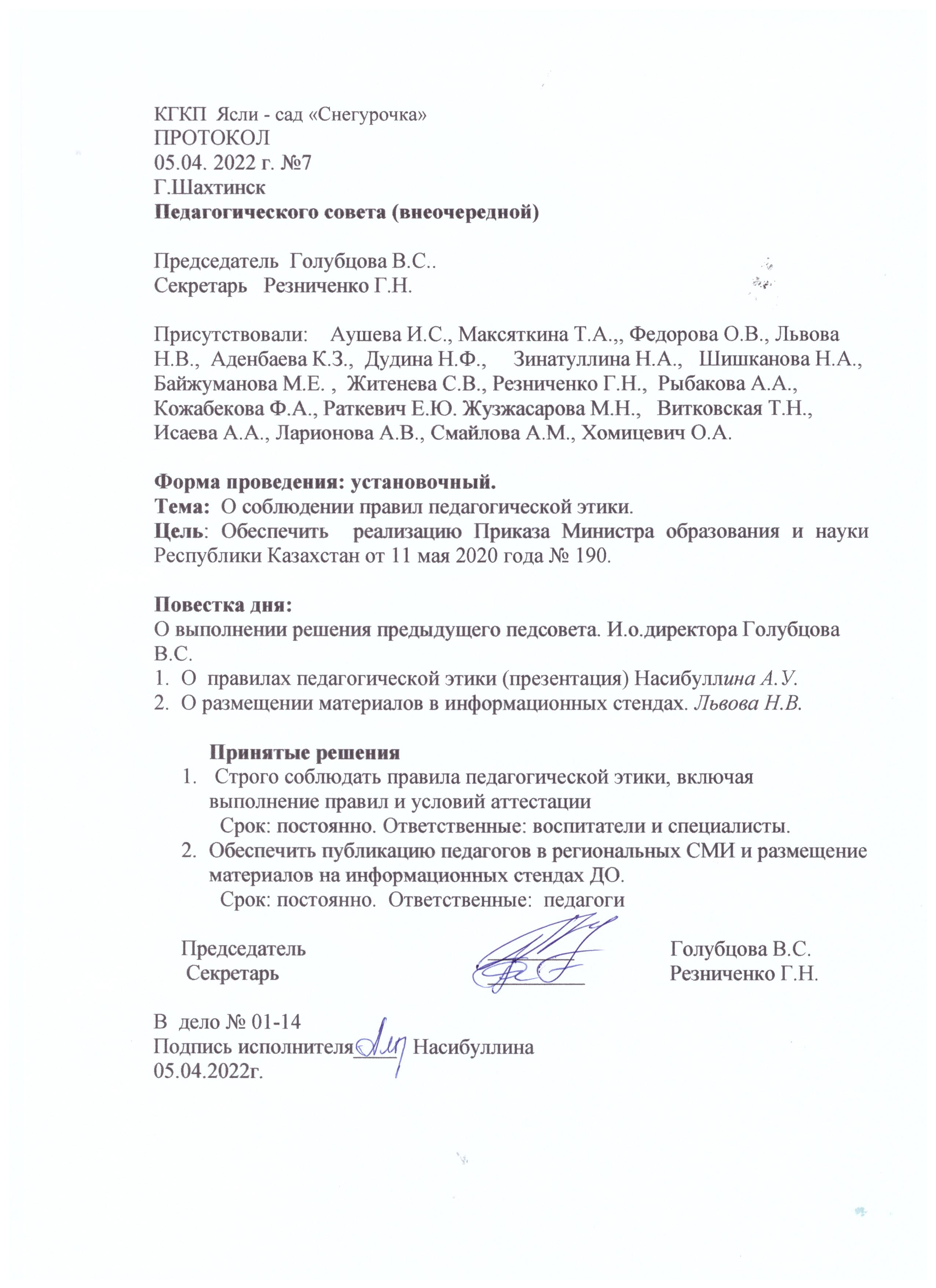 Педагогикалық кеңес №7 хаттамасы05.04.2022 |