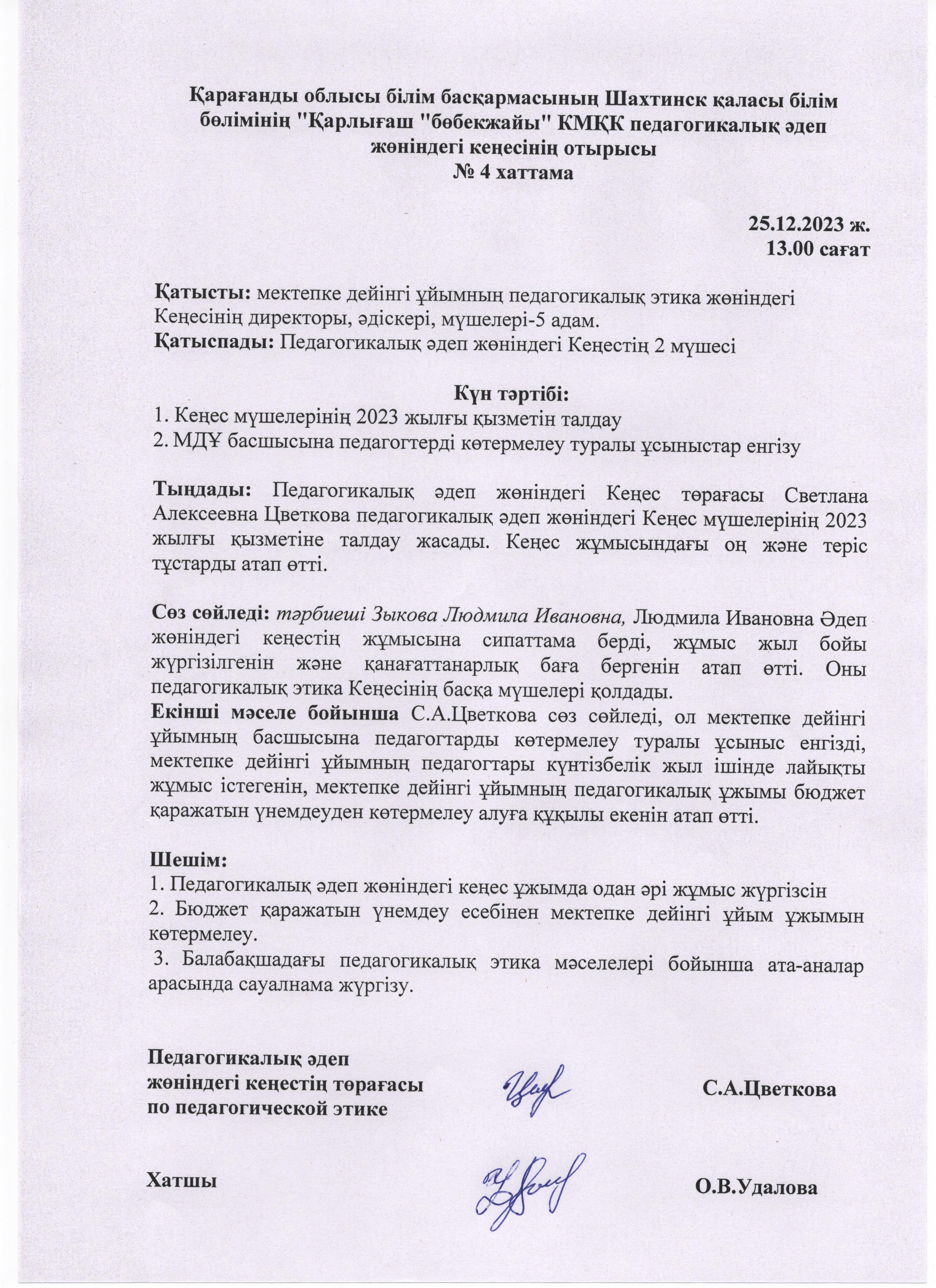Протокол № 4 заседания Совета по педагогической этике от 25.12.2023 г.Протокол № 4 заседания Совета по педагогической этике от 25.12.2023 г. |