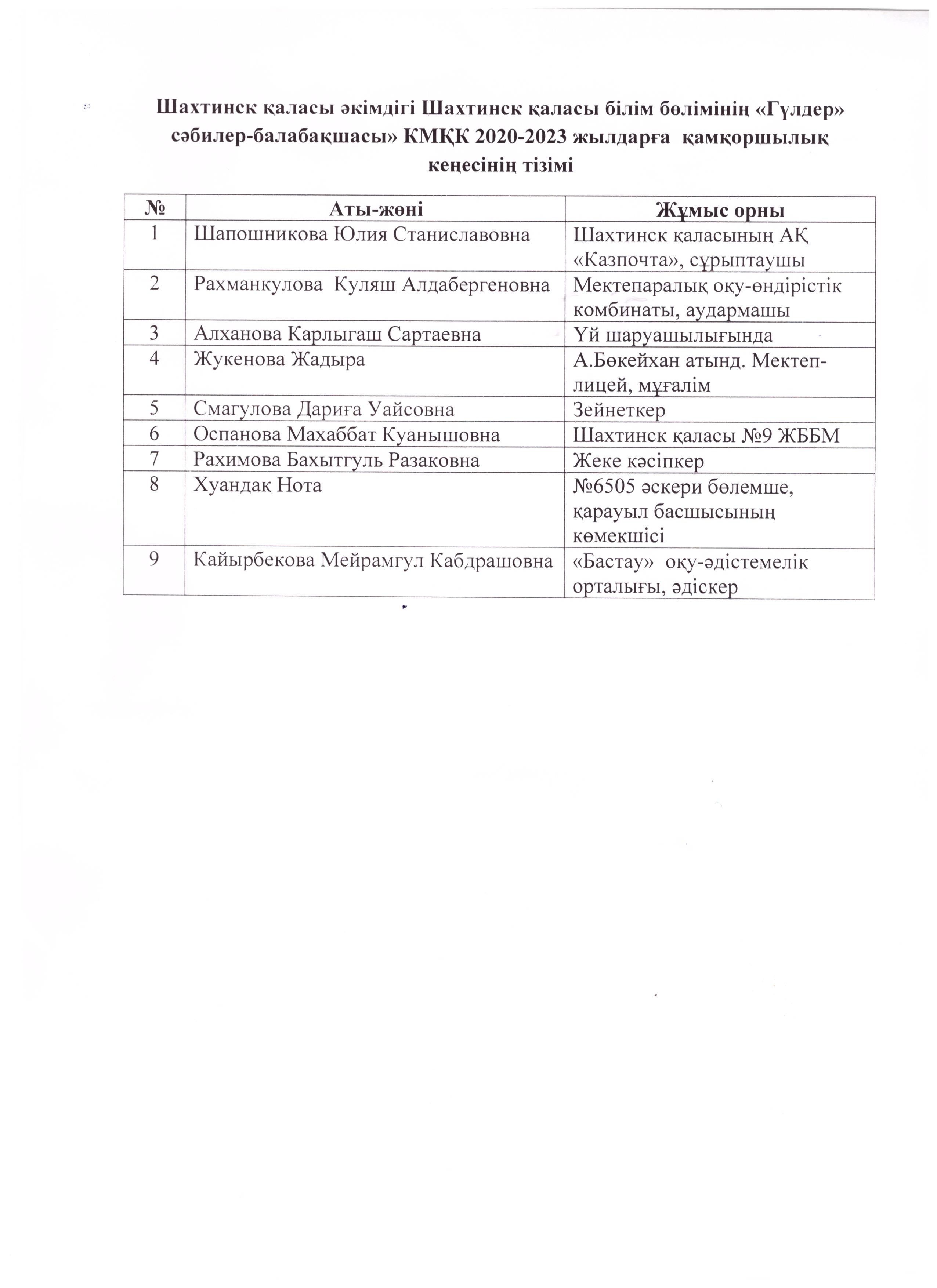 Қамқоршылық кеңес тізімі2020-2023 жылдарға қамқоршылық кеңес тізімі |