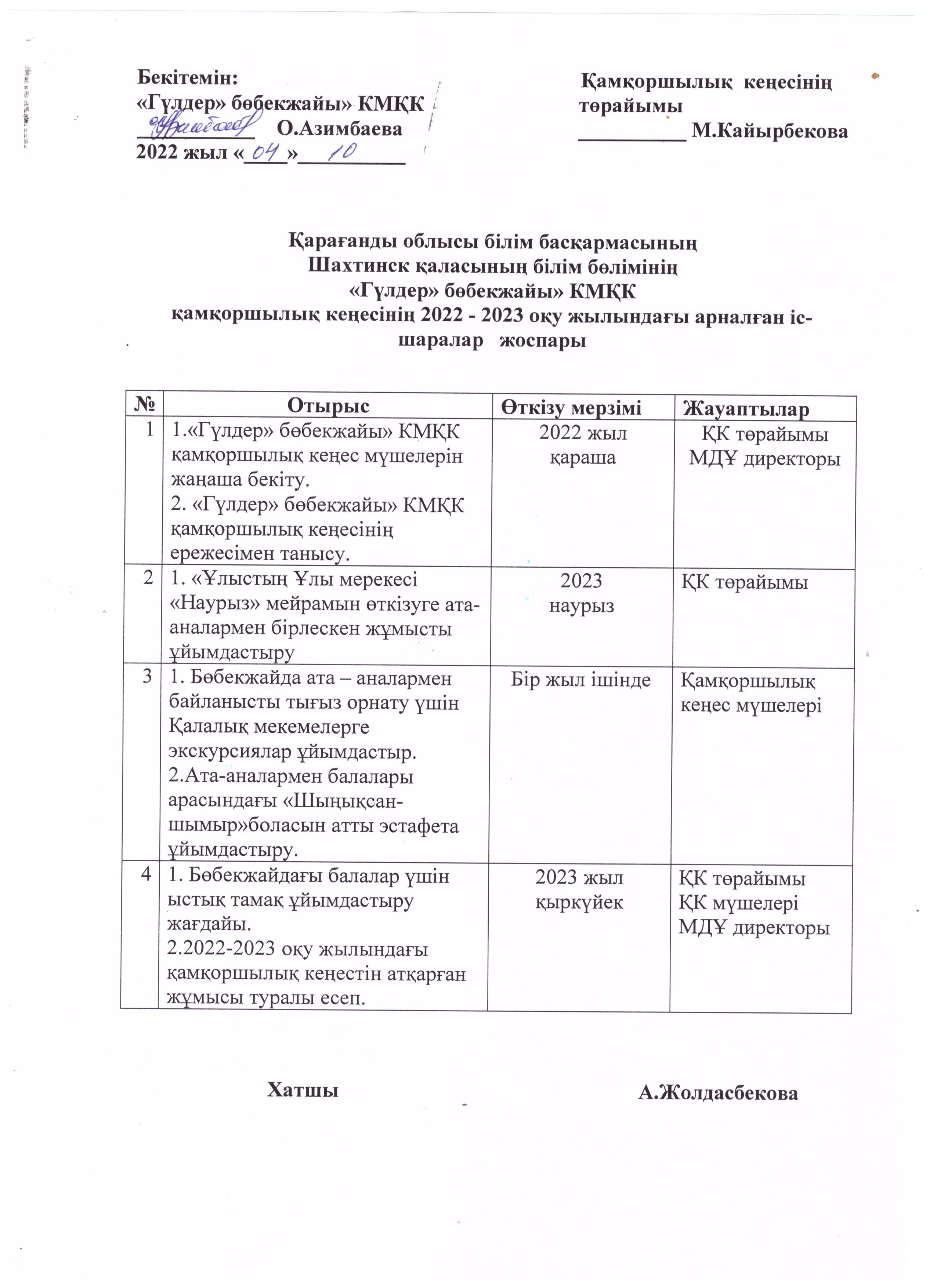 2021-2022 жылдардағы қамқоршылық кеңестің жұмыс жоспарыЖұмыс жоспары |