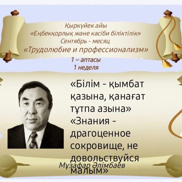 «Біртұтас тәрбие»Қыркүйек – еңбекқорлық және кәсіби біліктілік айы Сентябрь 2024 год |