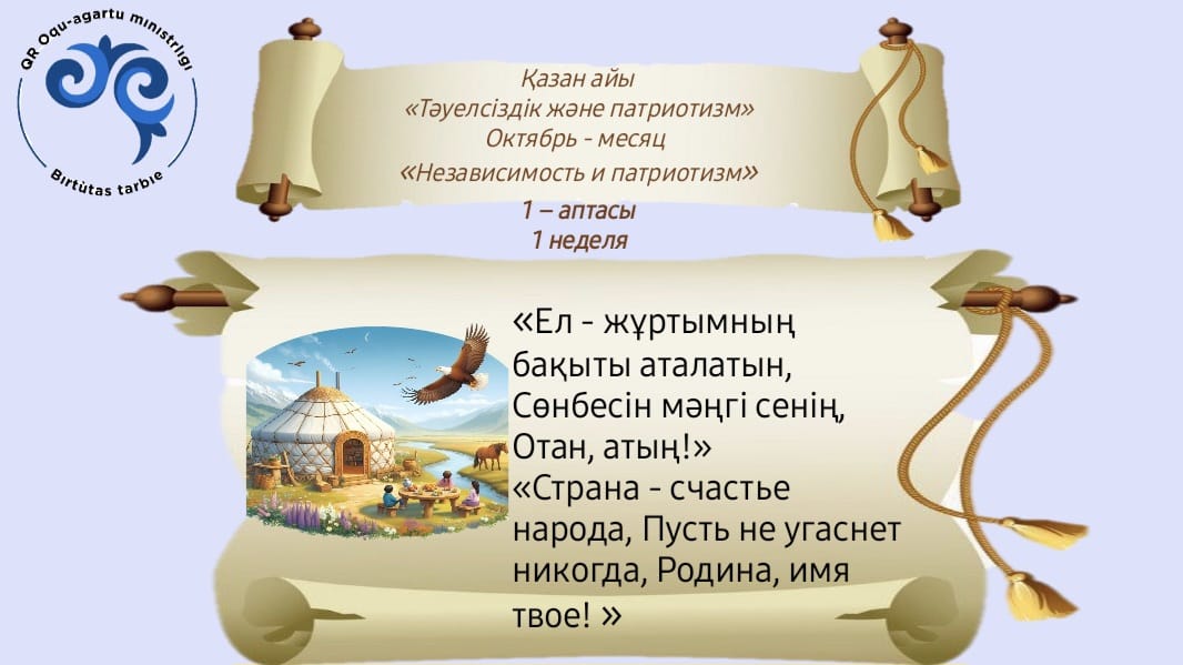 Қазан – тәуелсіздік және отаншылдық айы/ Октябрь 2024 год1 неделя "Независимость и патриотизм" |