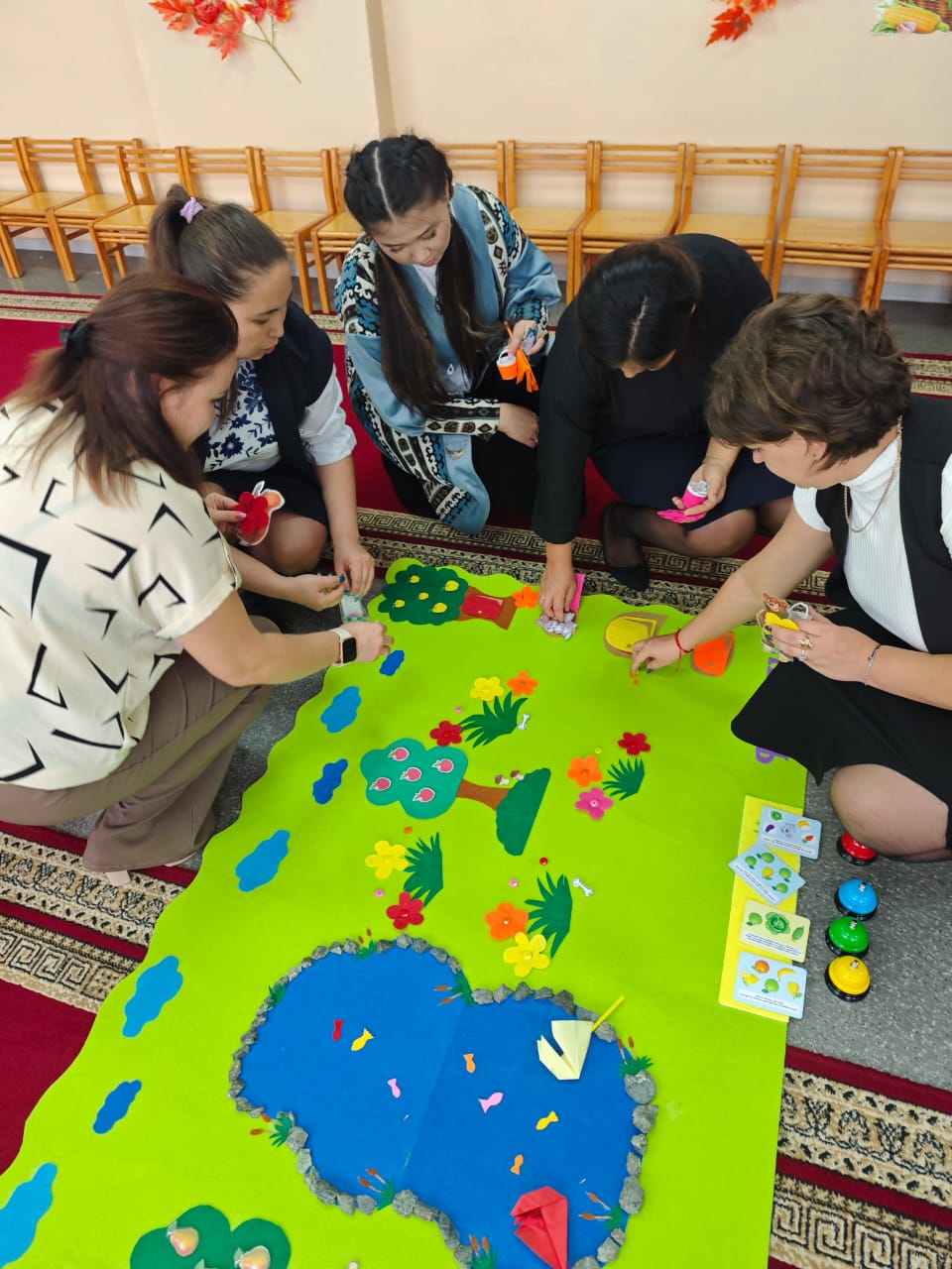 Сонымен қатар, түрлі ойындар арқылы тәрбиешілердің, педагог-психологтардың практикалық жұмыстары жүргізілді.