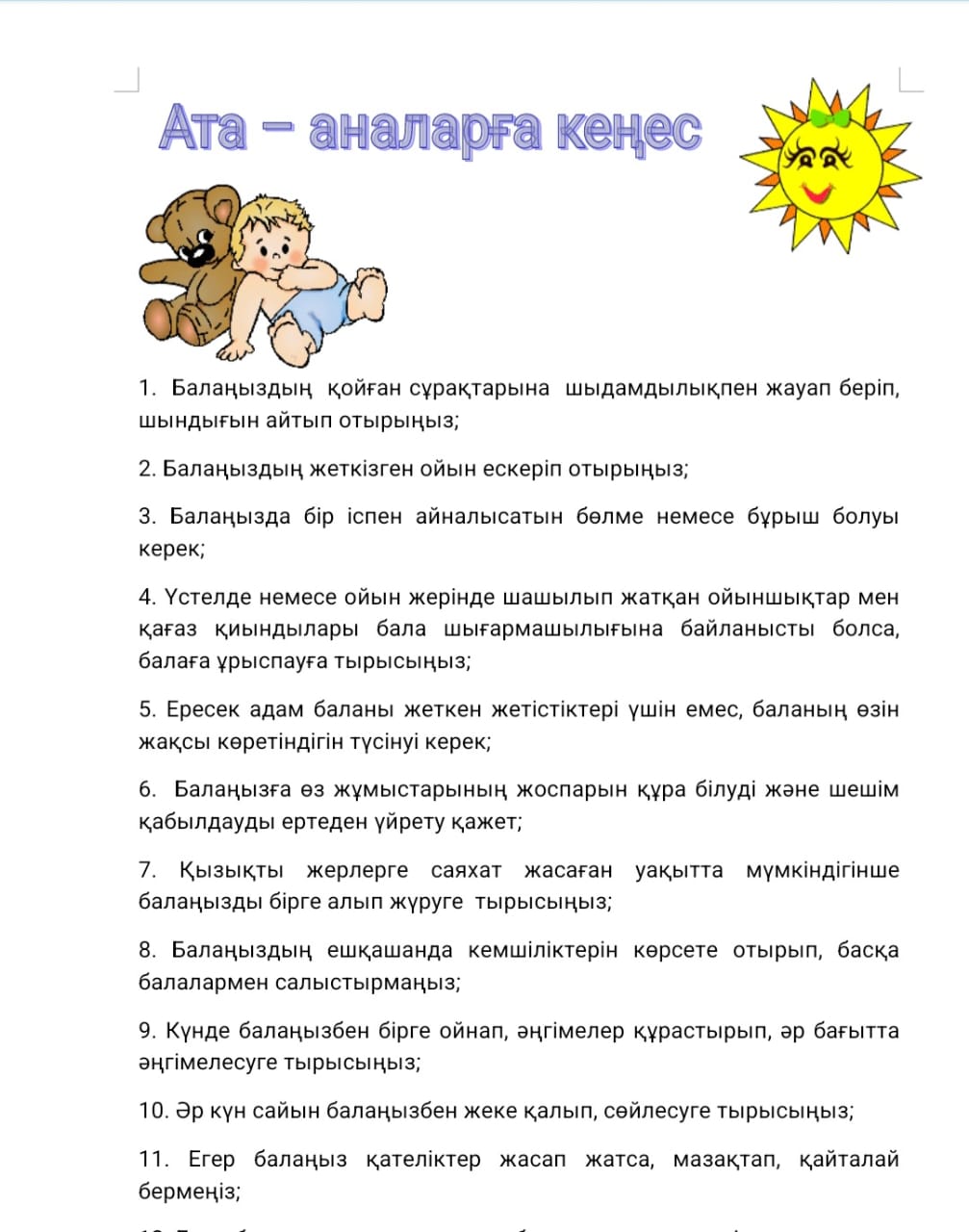 Ата-аналарға кеңес