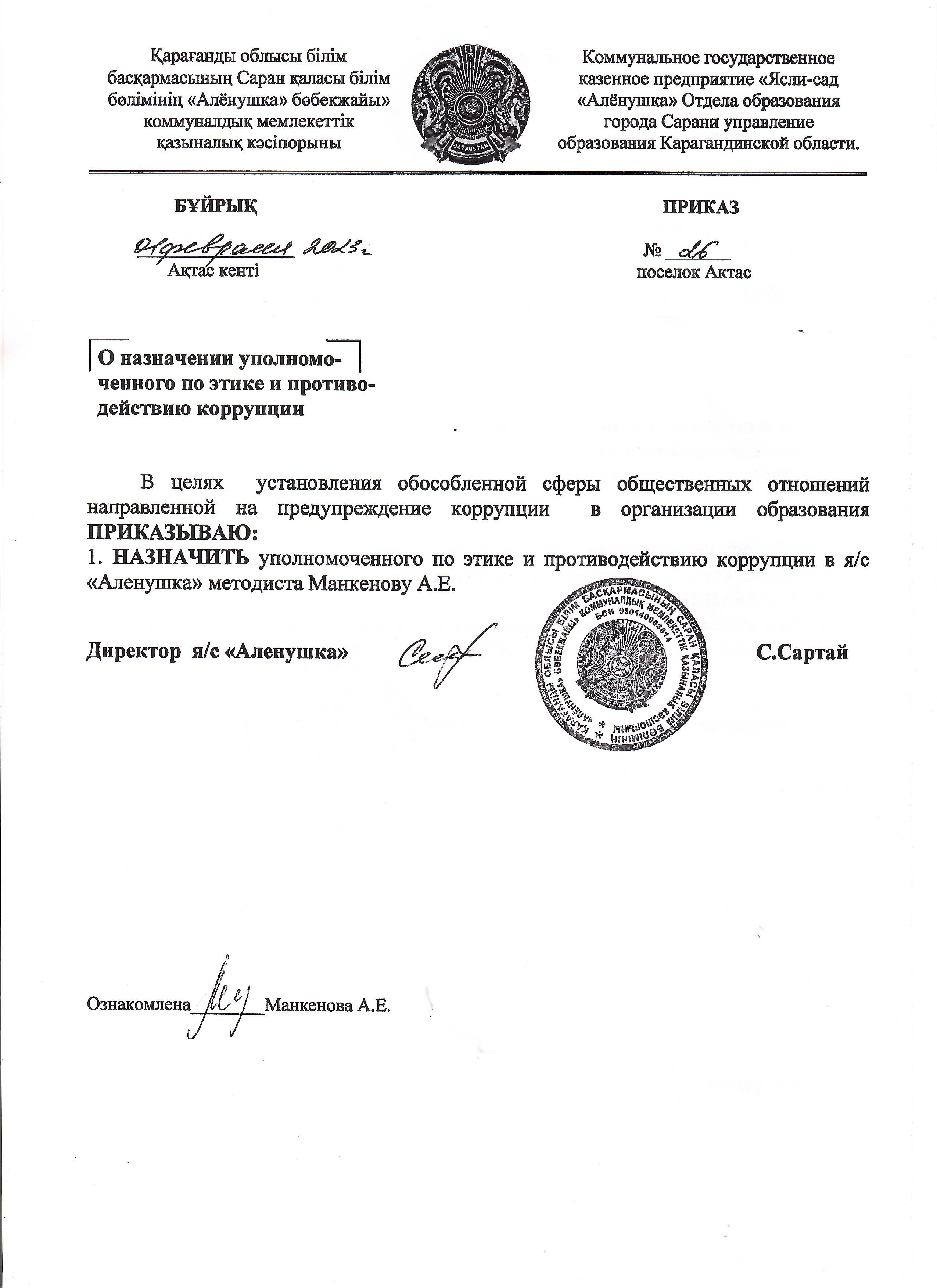 Сыбайлас жемқорлықСыбайлас жемқорлыққа ықпал ететін себептер мен жағдайлар жасауға жол бермеу туралы |