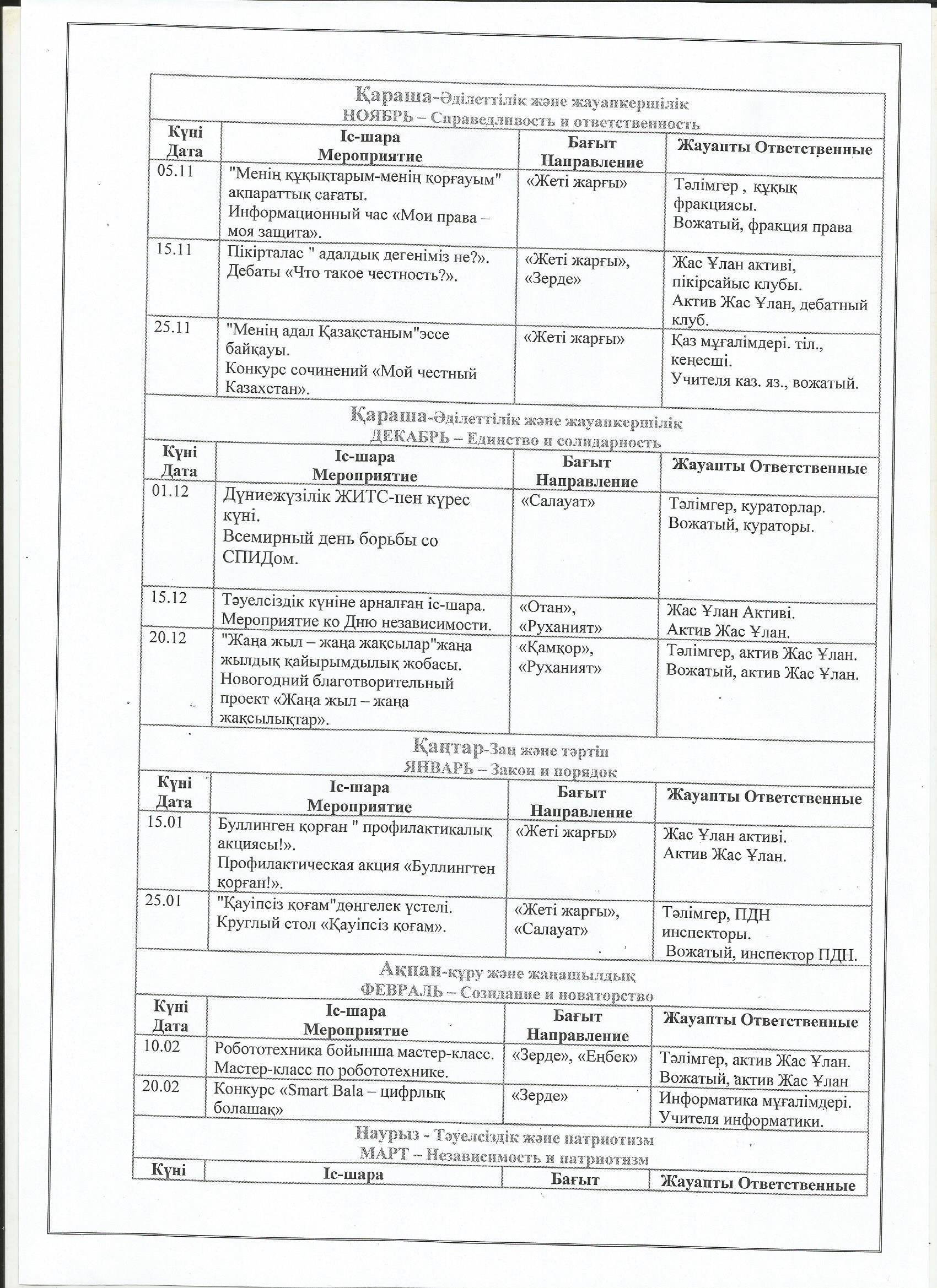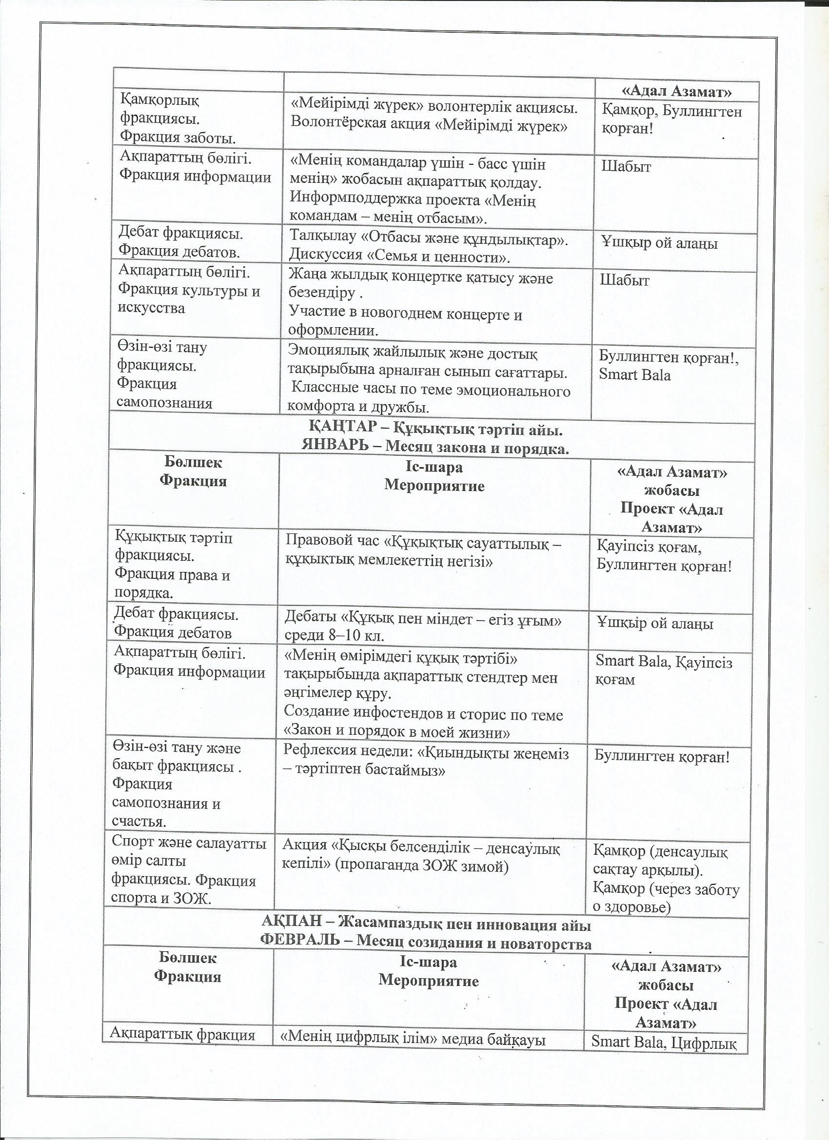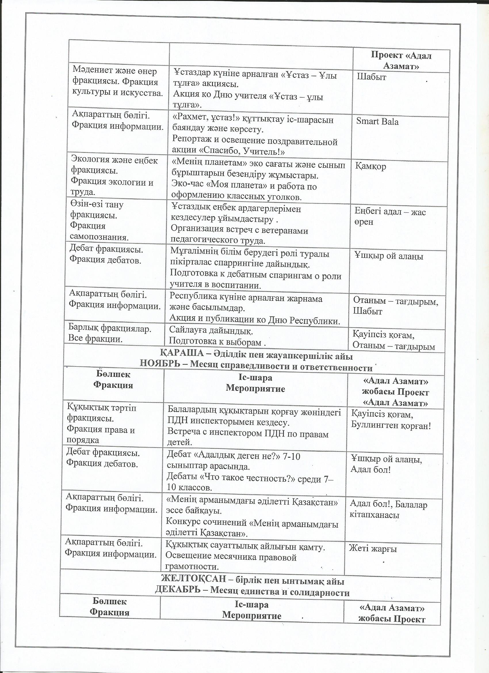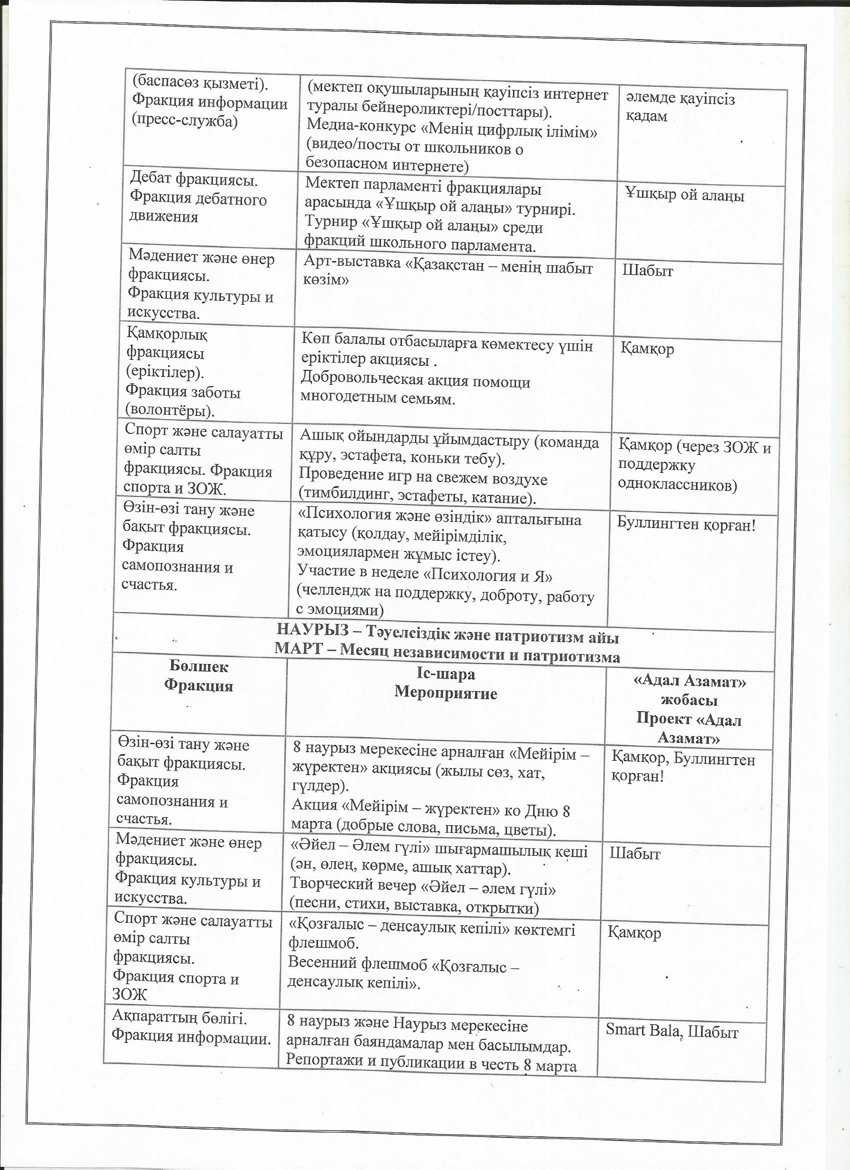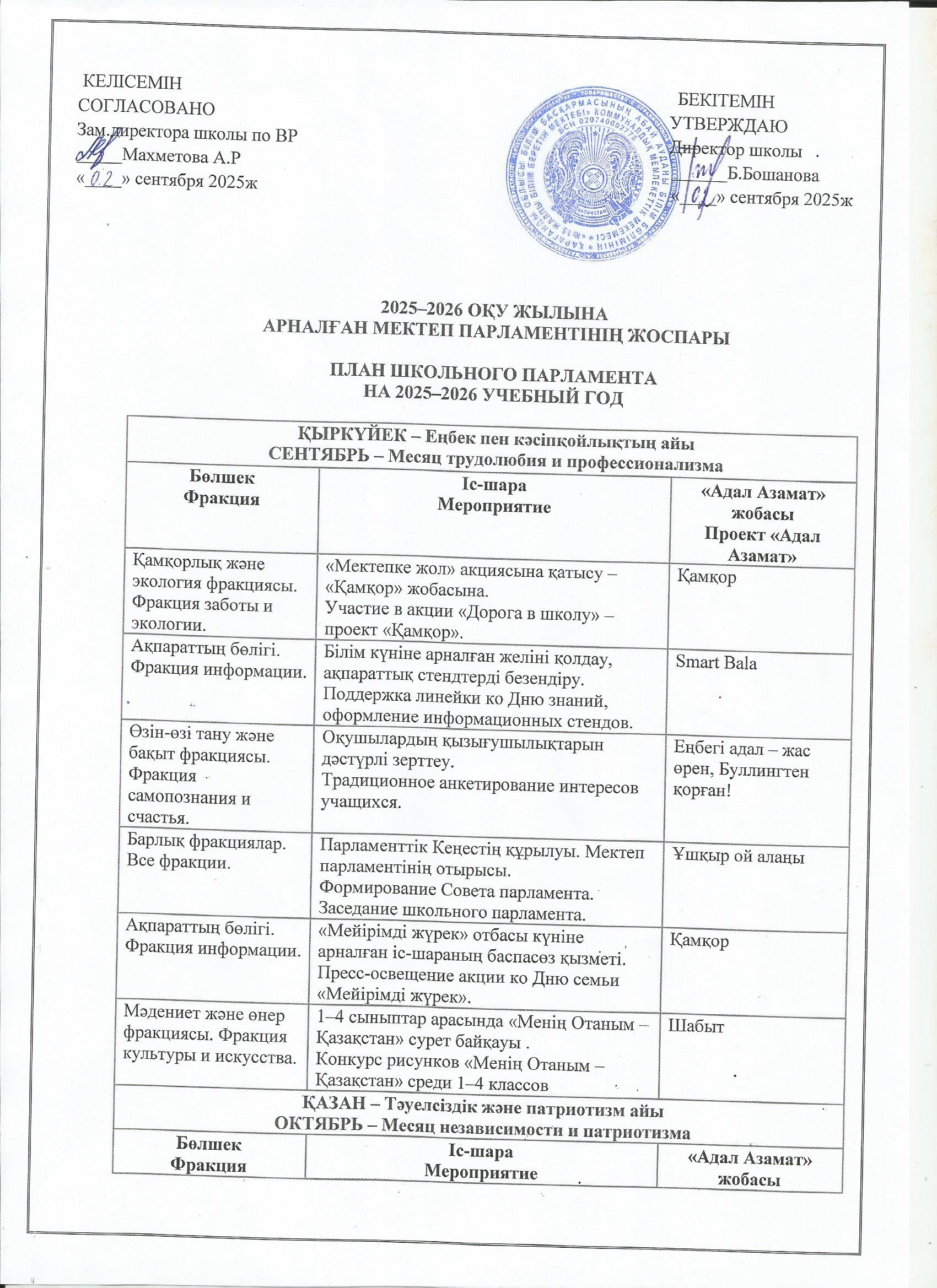 2025-2026 оқу жылына арналған мектеп парламентінің жоспарыПлан школьного парламента на 2025-2026 г. |