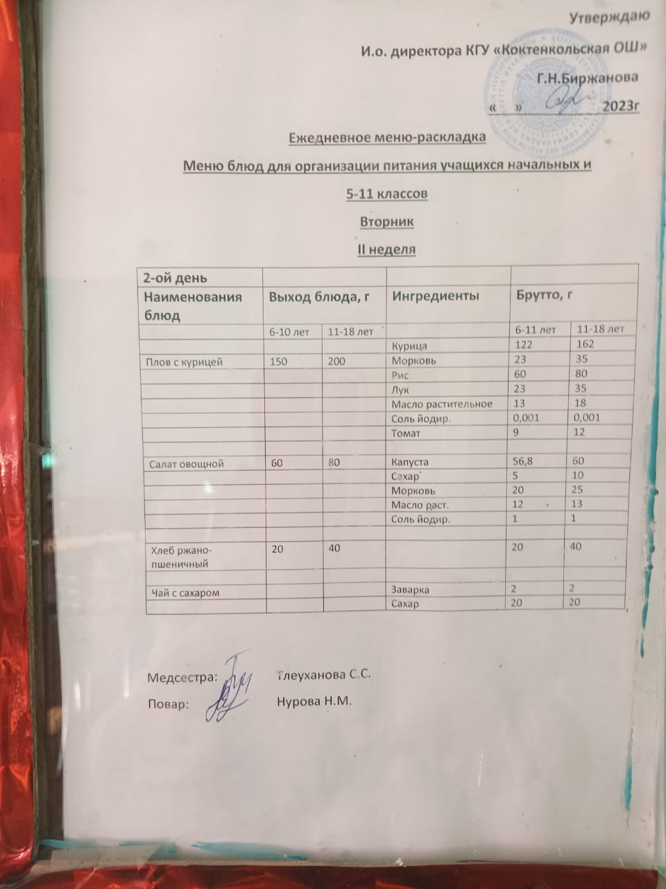 1-4 сыныптар мәзіріМеню 1-4 классы |