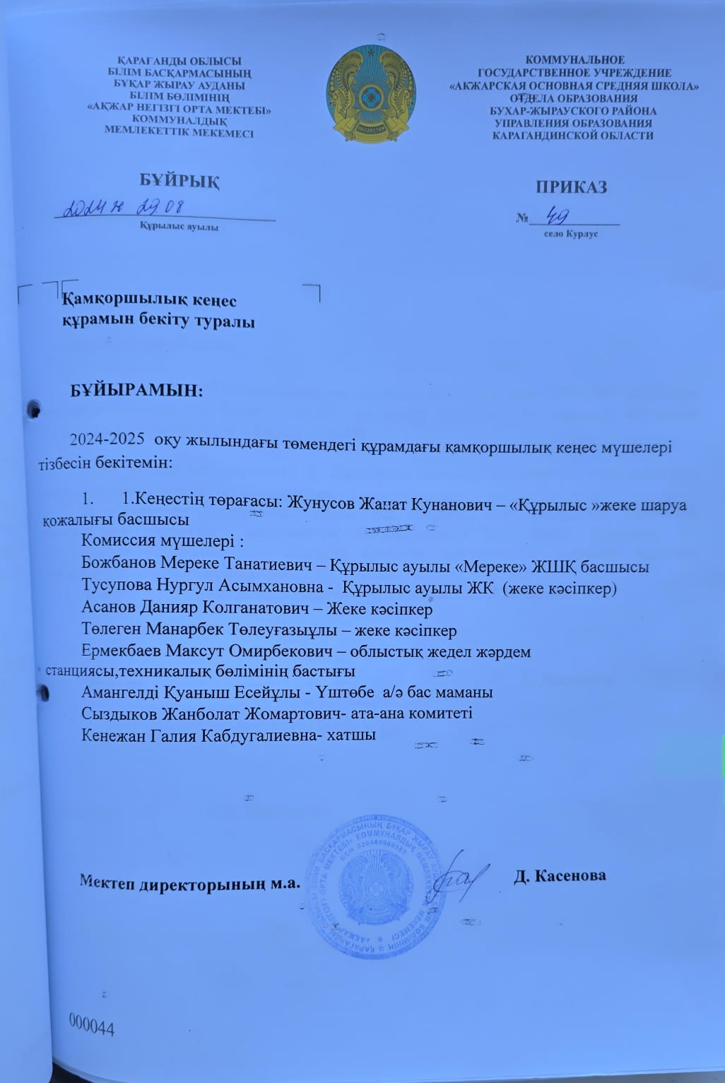 Қамқоршылық Кеңесінің құрамы"Приозерск қаласының №2 ЖББМ" 2024-2025 оқу жылына