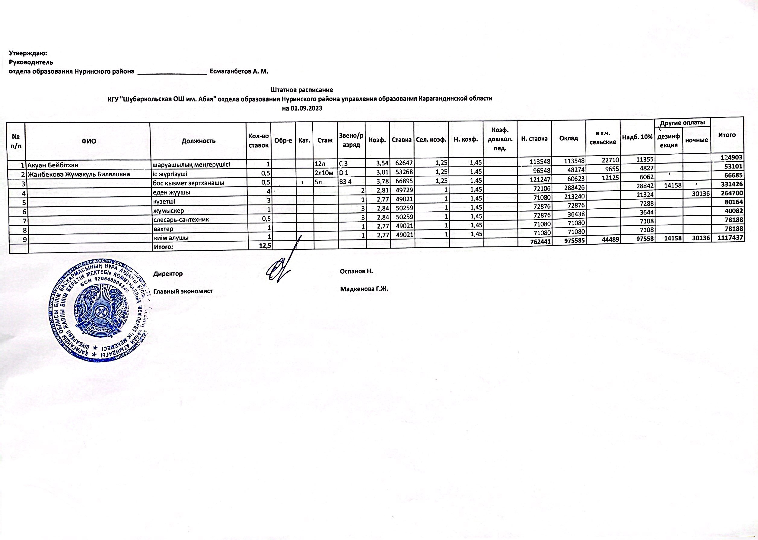 Оқу жоспары 2023-2024 оқу жылыАбай атындағы Шұбаркөл ЖББ мектебінің оқу жоспары |
