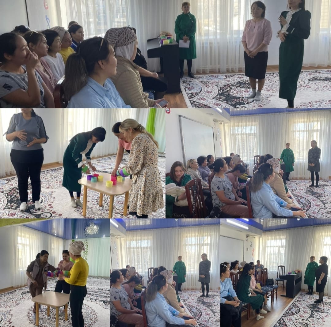Встреча с родителями дошкольной группы2023 жылдың 28 наурыз күні «Гүлдер» бөбекжайы» КМҚК директор м.а О.Азимбаева және тәрбиешілері А.Арыстанбекова, З.Б.Оскикбаева мектепалды тобы «Қызғалдақ» тобының ата - аналарымен «Біз мектепке барамыз» бірінші сыныпқа балаларды қабылдау туралы жиналыс өткізді. Жиналысқа С.Сейфуллин гимназия мектебінің директоры М.К.Осанова мен 1 сыныпқа қабылдайтың мұғалімдер С.А.Шаймерденова, А.С.Абдикаликова және С. Асфендияров атындағы мектеп мұғалімі Ж.Е.Аканова қатысып, бірінші сыныпқа қабылдау туралы ақпарат берді. Жиналыс сонында бөбекжайдың педагог - психологы С. К. Сыздыкова жиналысқа қатысқан ата - аналармен биылғы оқу жылы ойын іс - әрекетімен өтіп жатқандықтан «Есте сақтайық ойын» тренинг өткізді. |