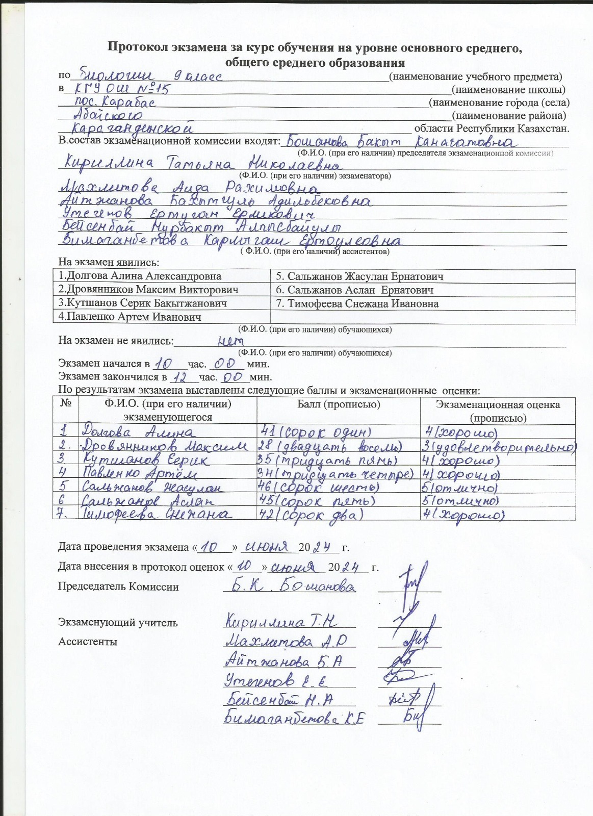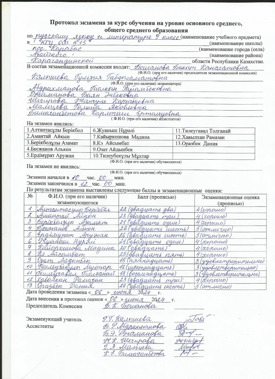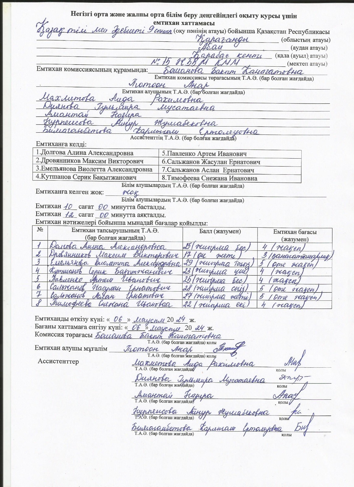 Протоколы экзаменов 9 класс 2023 г.Емтихан хаттамалары 9 сынып 2024 ж. 1