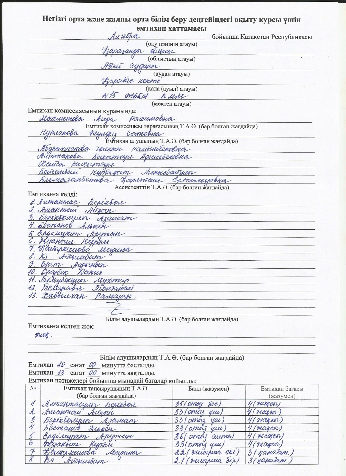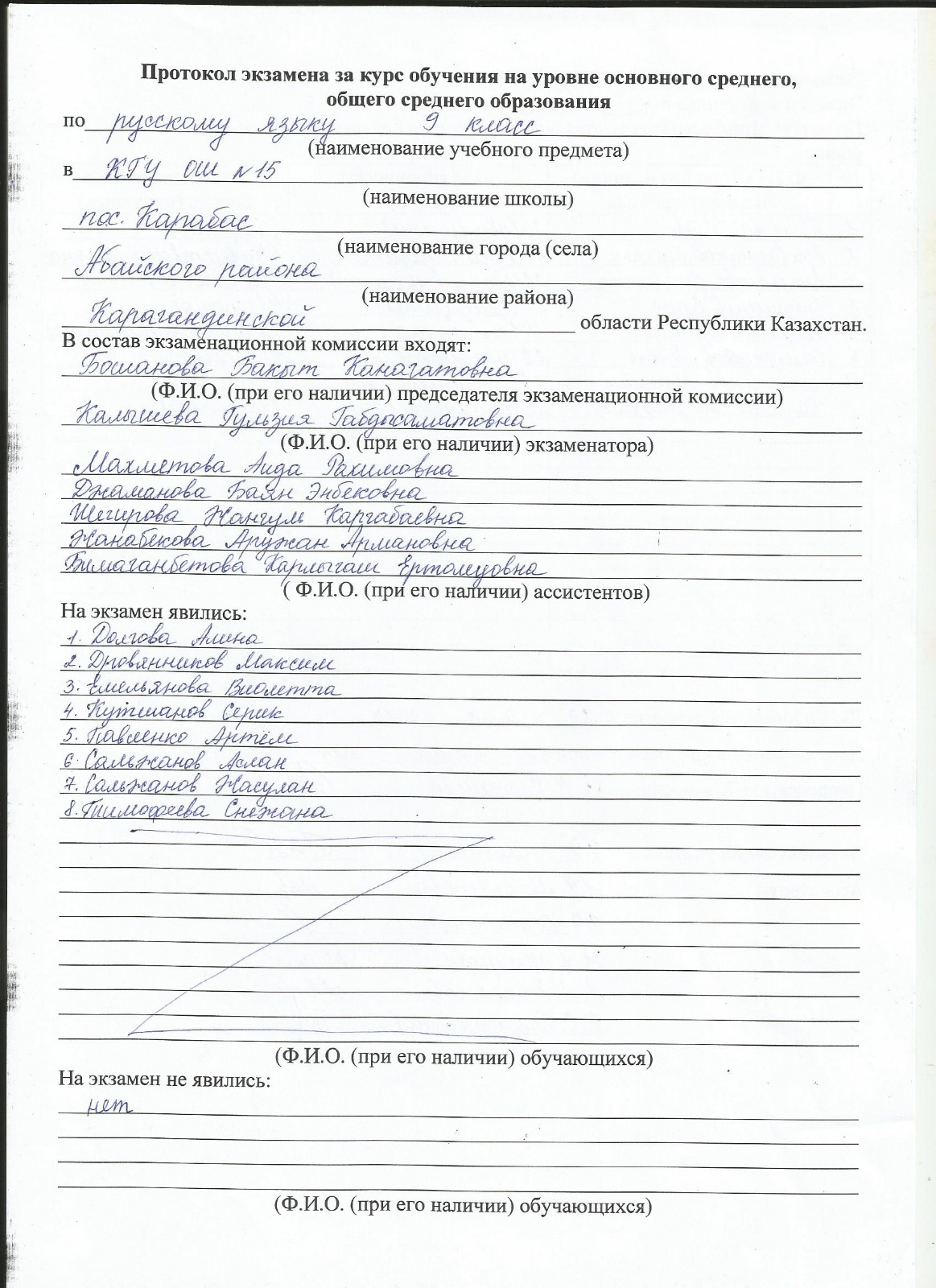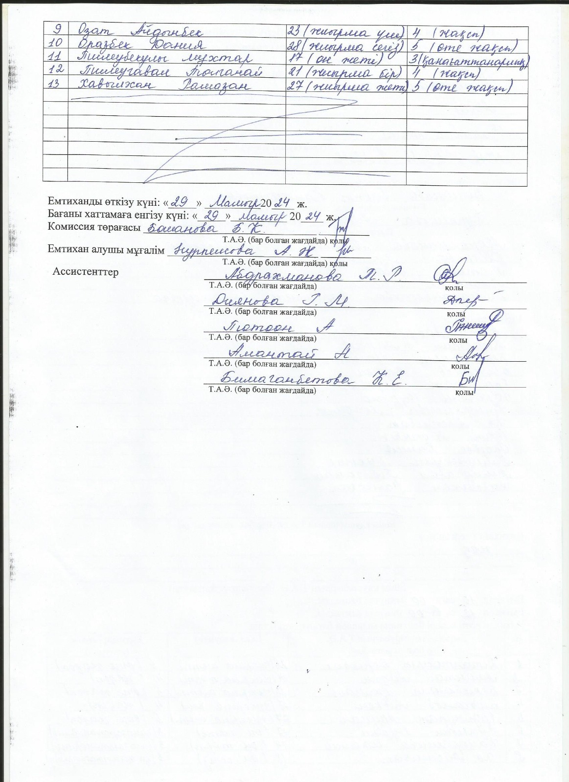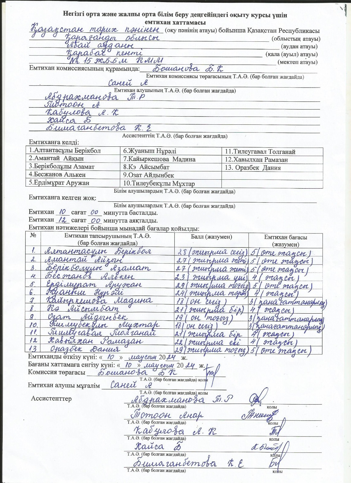 Протоколы экзаменов 9 класс 2023 г.Емтихан хаттамалары 9 сынып 2024 ж. 1