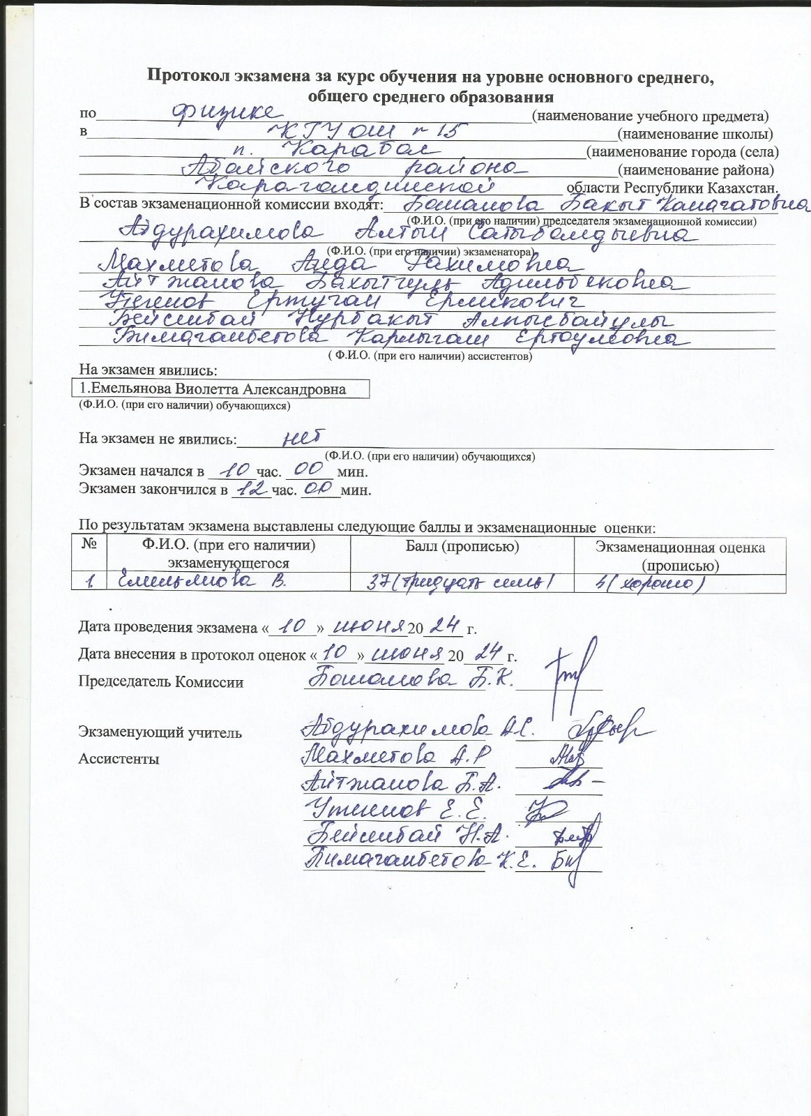 Протоколы экзаменов 9 класс 2024 г.Емтихан хаттамалары 9 сынып 2024 ж. 1 |