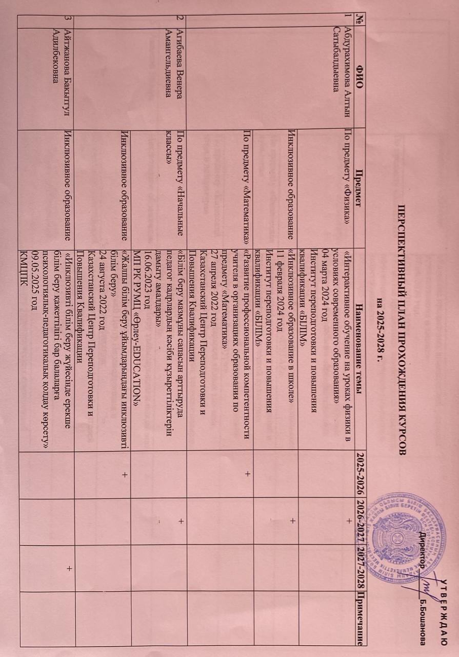 Курстарды өтудің перспективалық жоспарыПерспективный план прохождений курсов 3 ст |