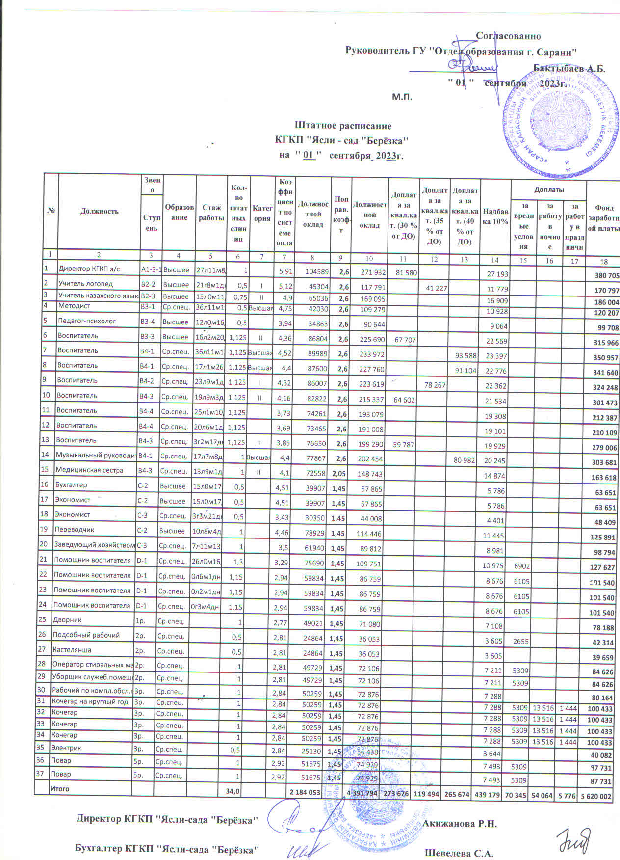 Штаттық кестеШтаттық кесте |
