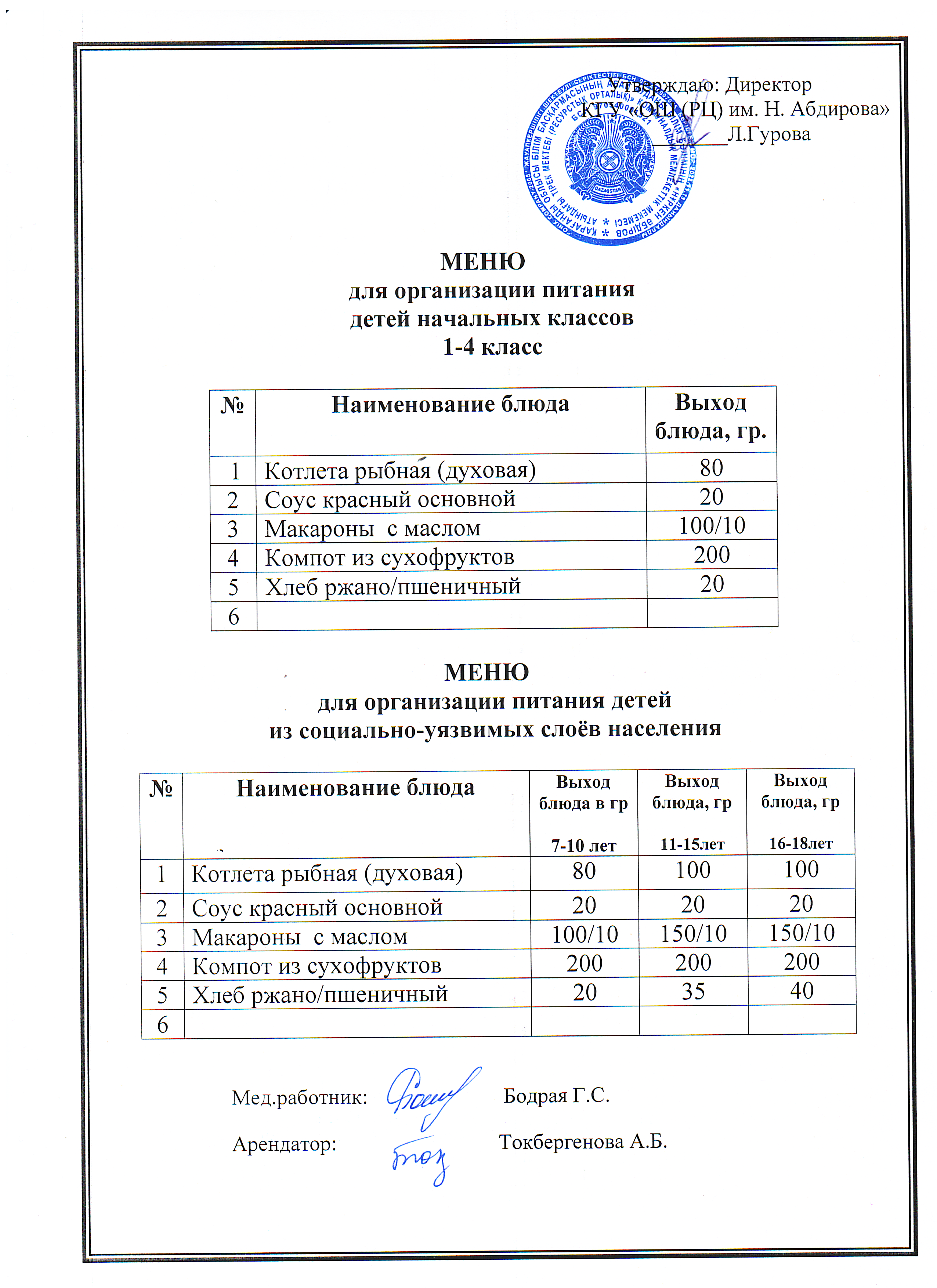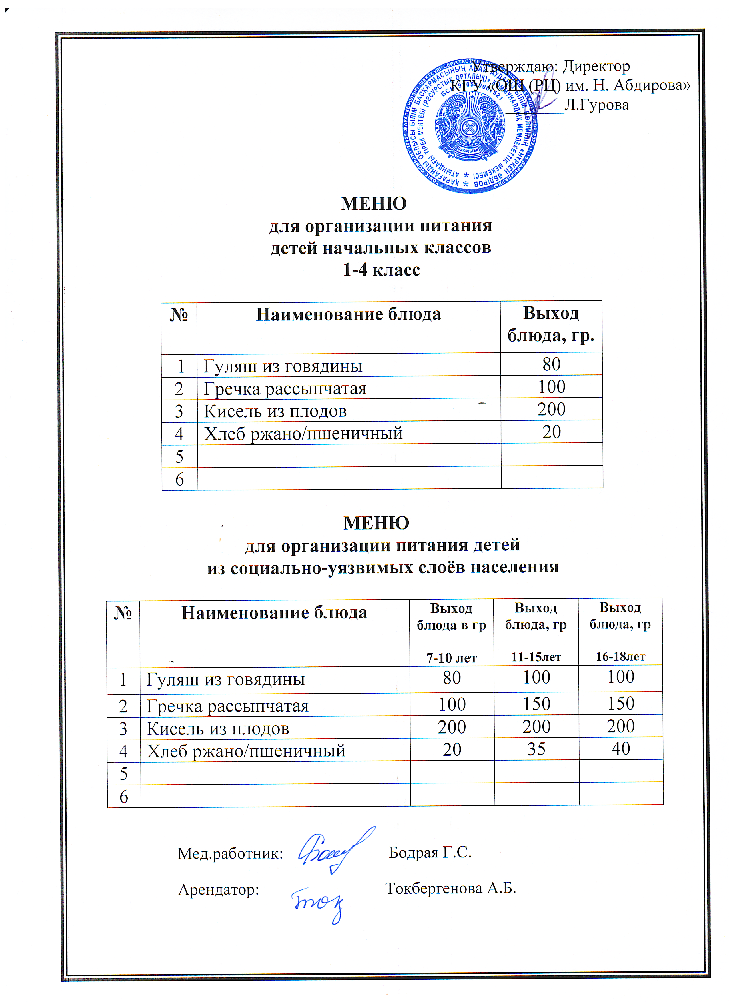 Тегін ыстық тамақ мәзірі1-4 сынып оқушыларын ыстық тегін тамақпен қамтамсыз етуді ұйымдастыру |