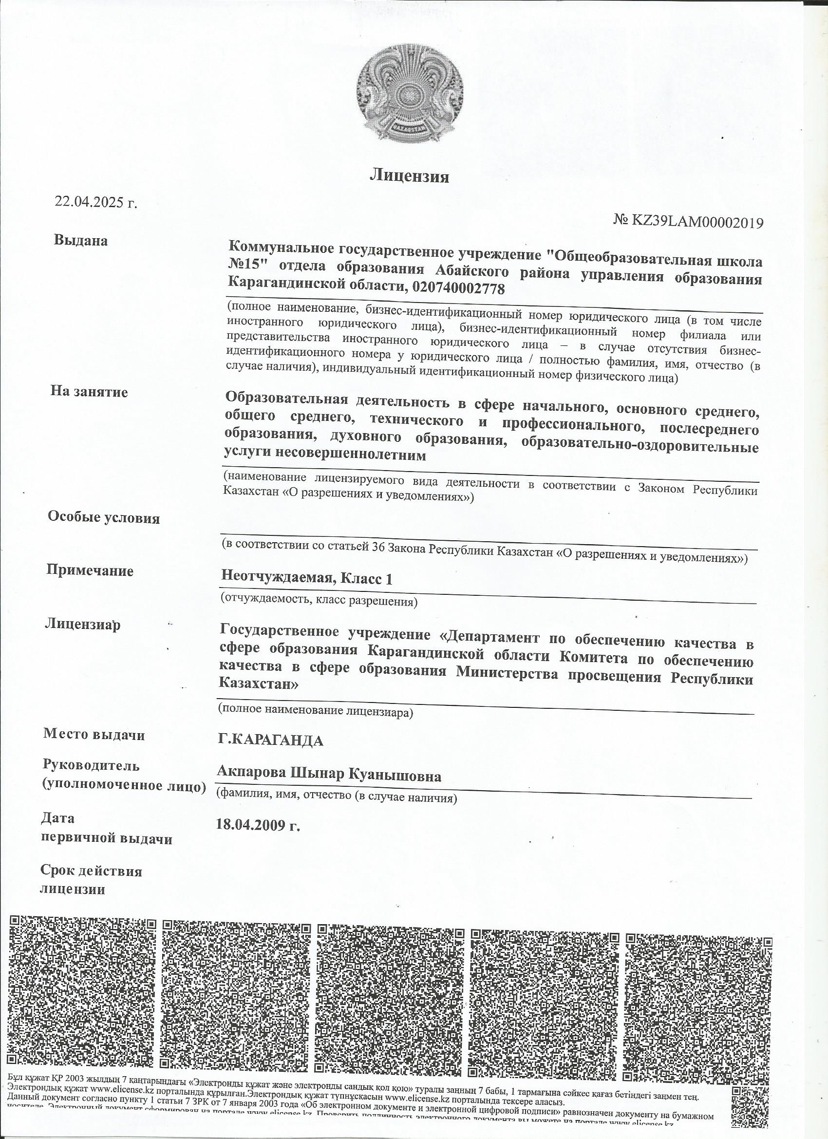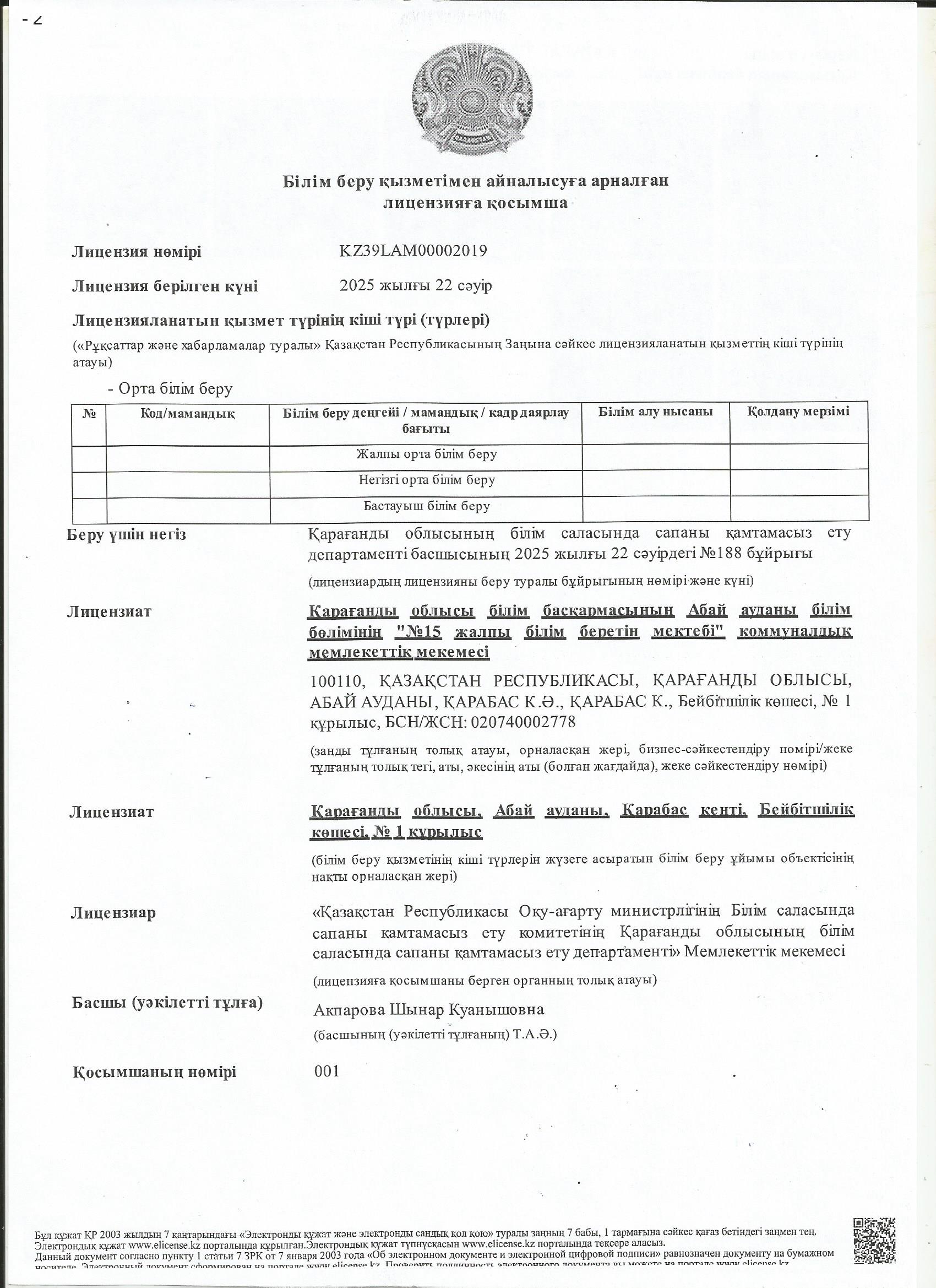 Лицензияға қосымшаЛицензияға қосымша Қазақ тілінде |