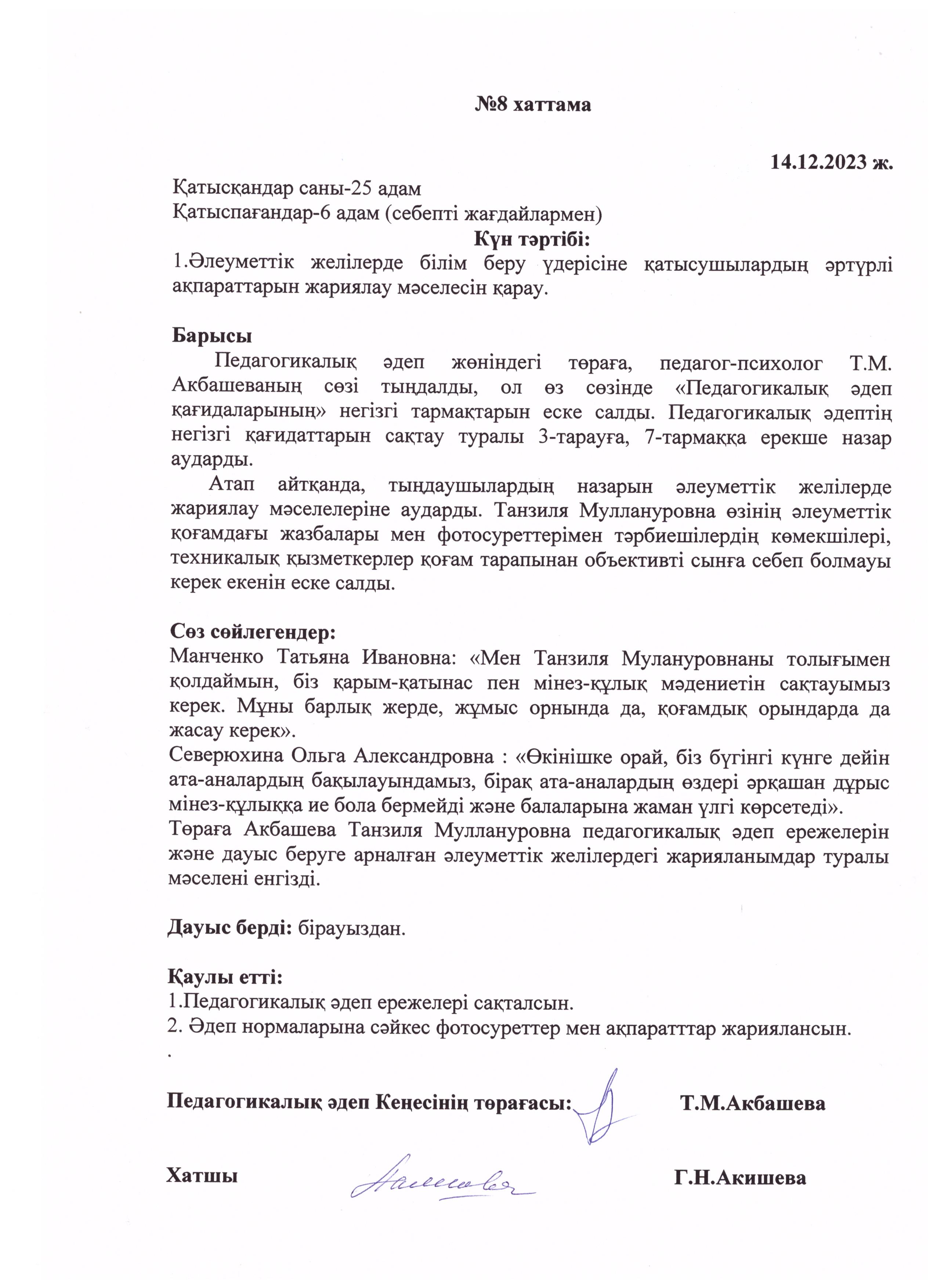 Педагогикалық әдеп жөніндегі кеңестің жұмыс жоспары2023 ж |
