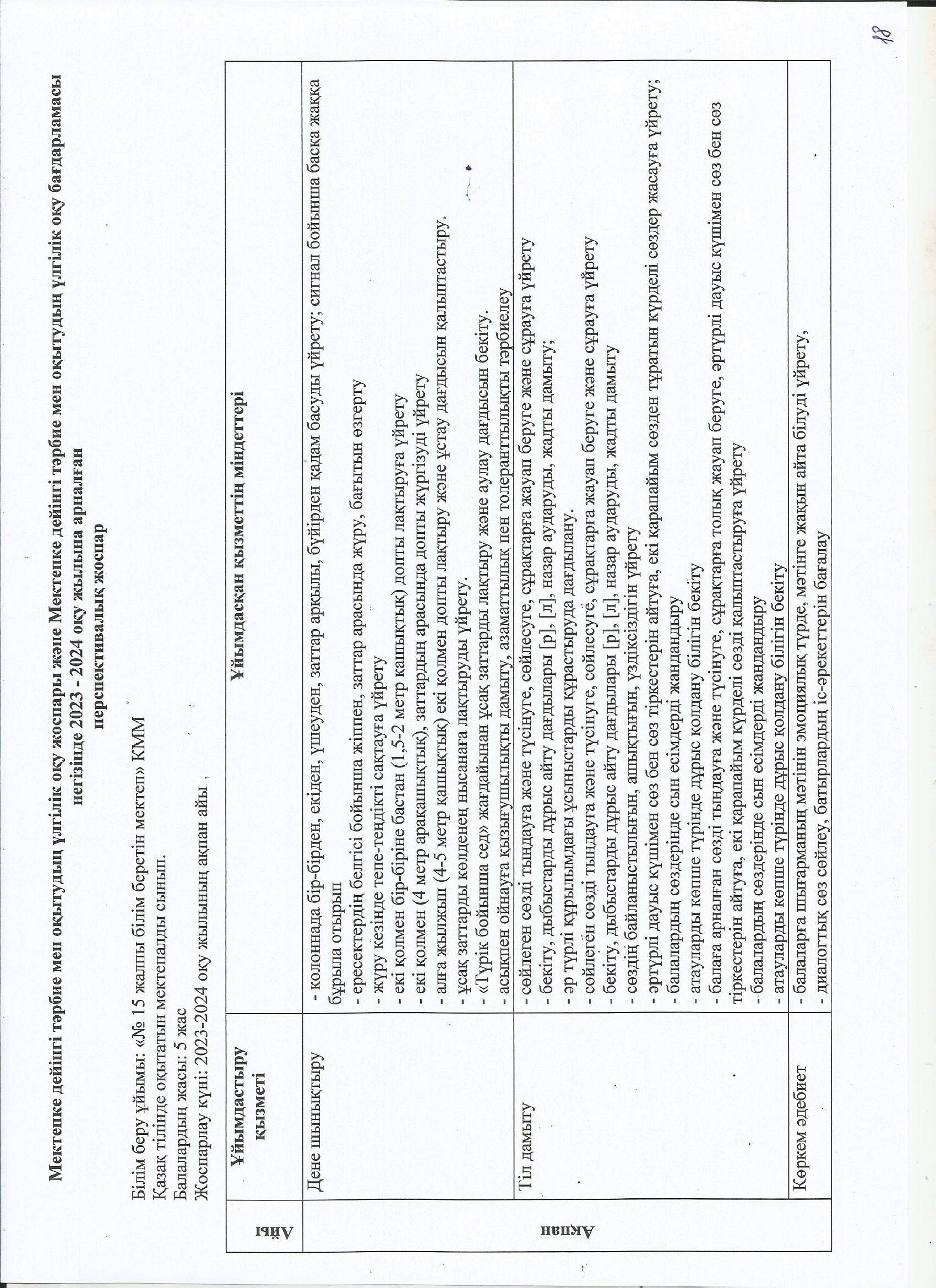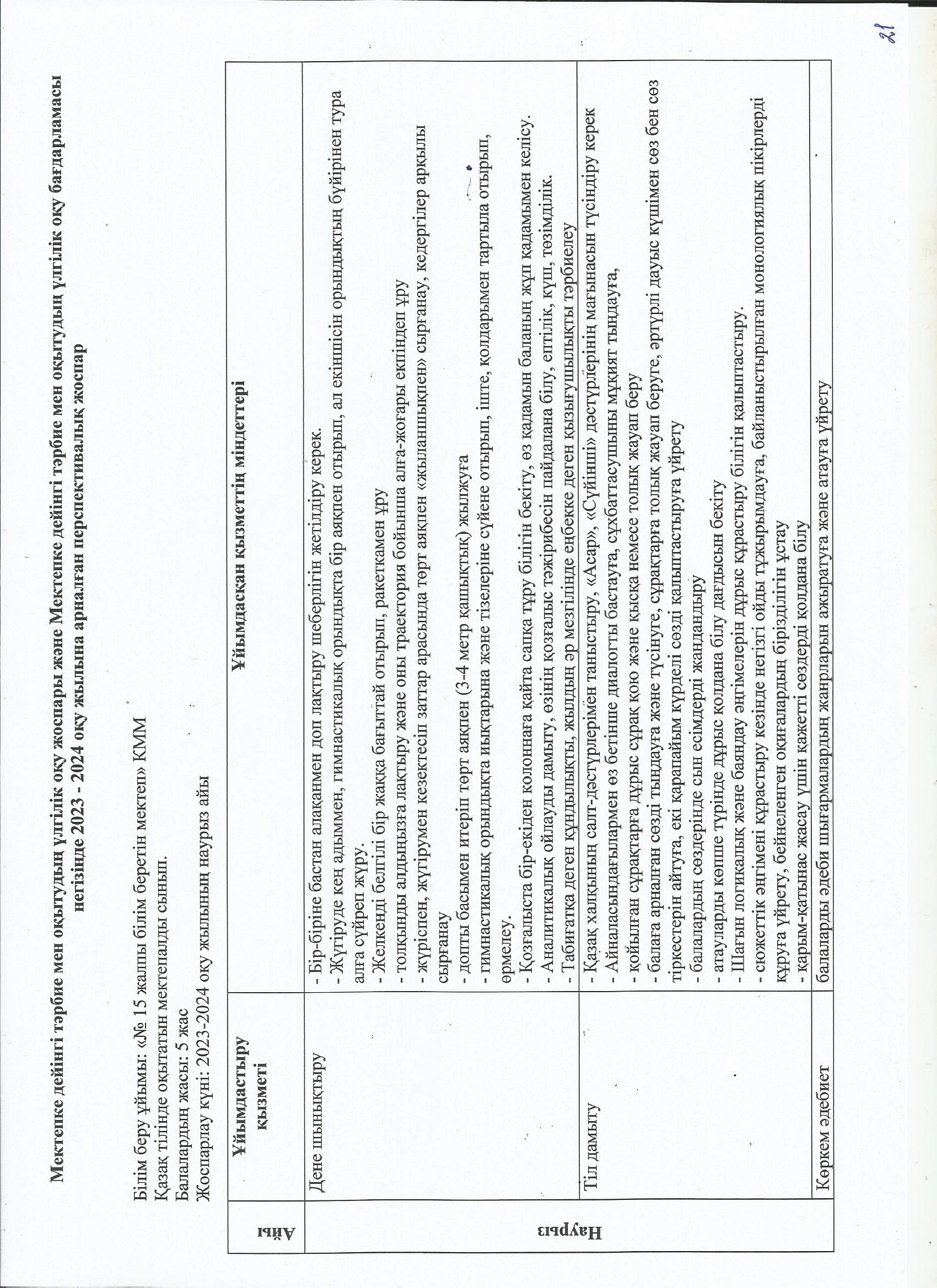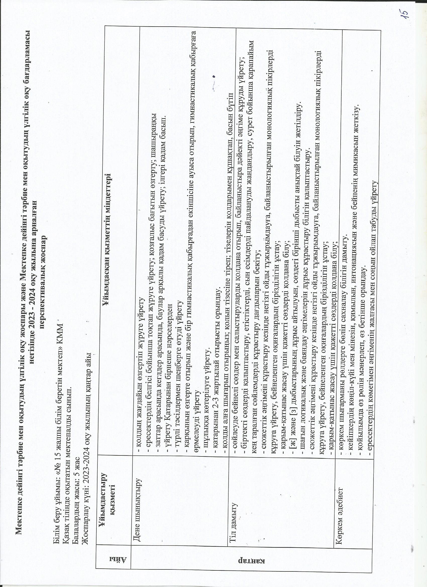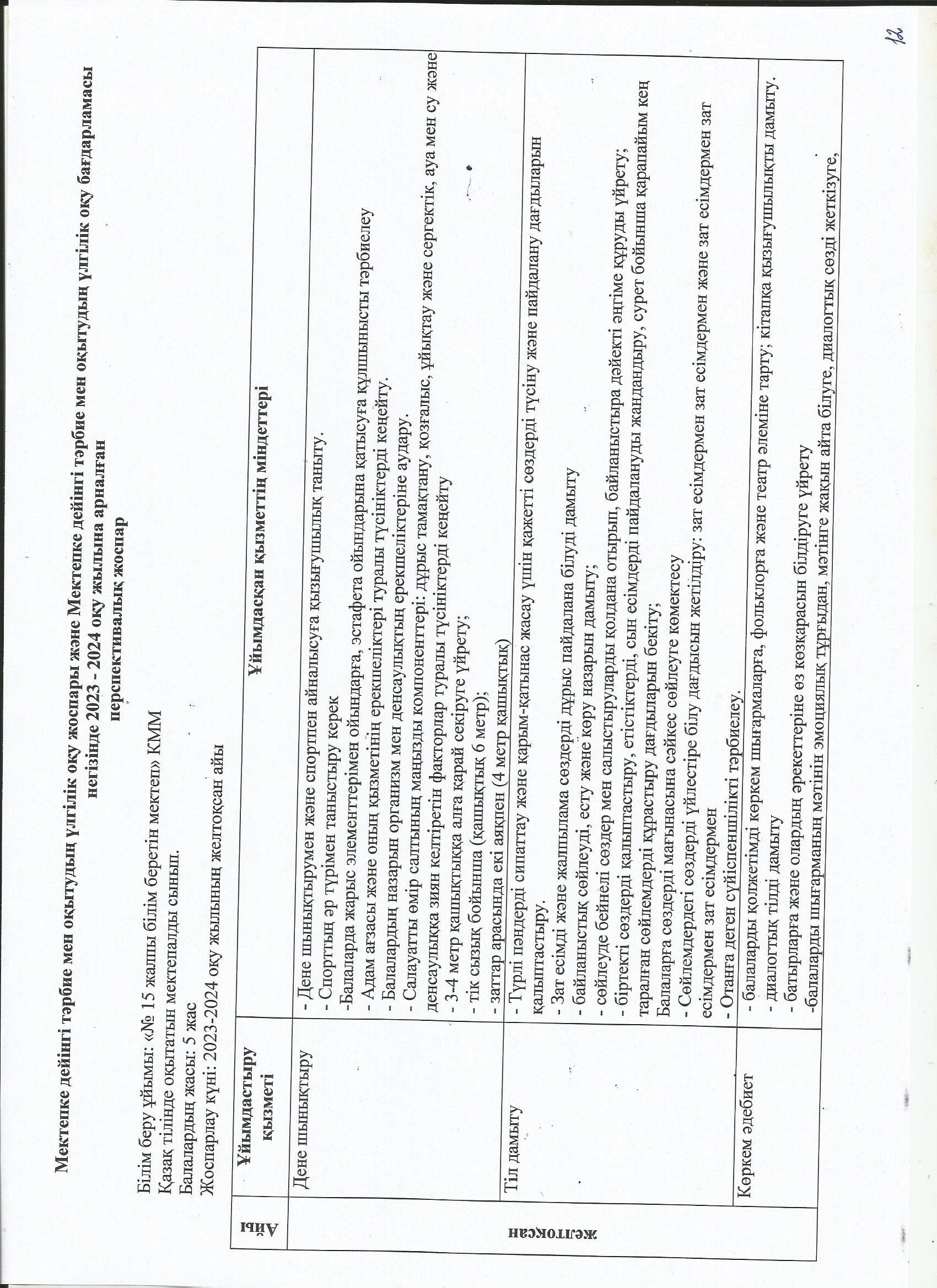 Мектепалды жұмыстың перспективалық жоспарыПерспективный план предшкольной работы 15 ст. |