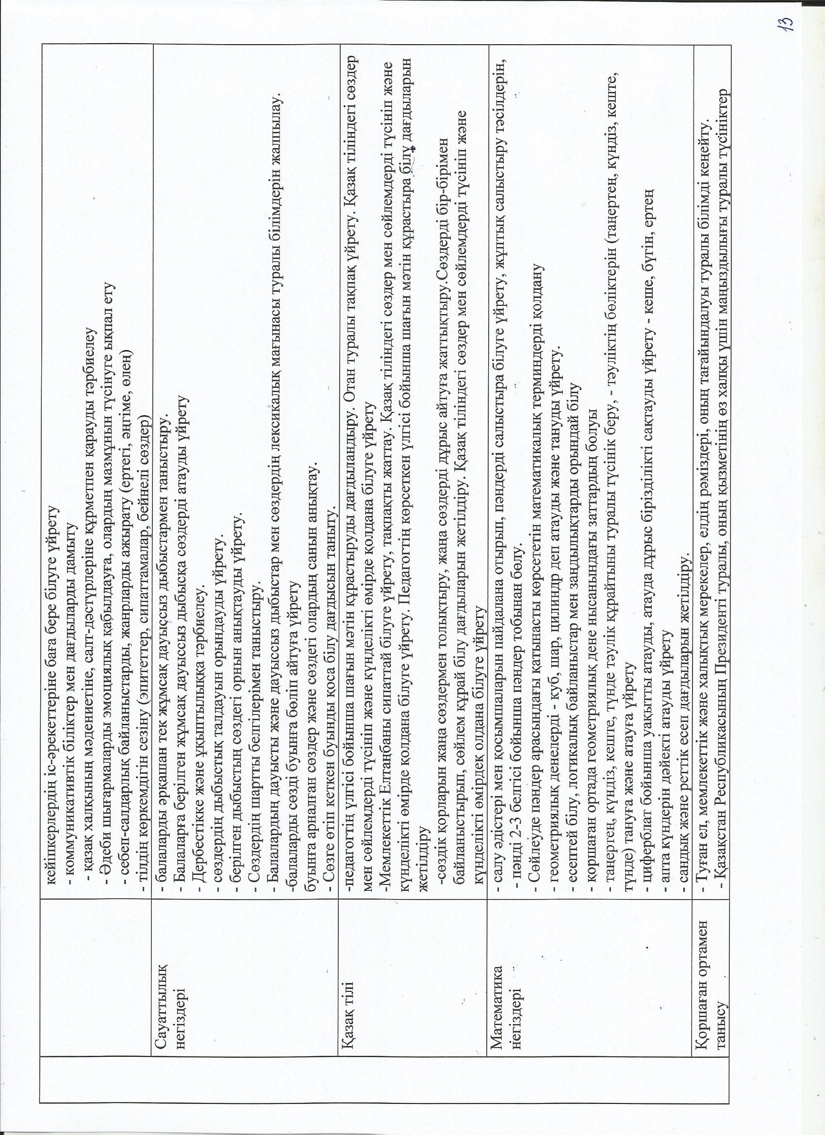 Мектепалды жұмыстың перспективалық жоспарыПерспективный план предшкольной работы 13 ст. |