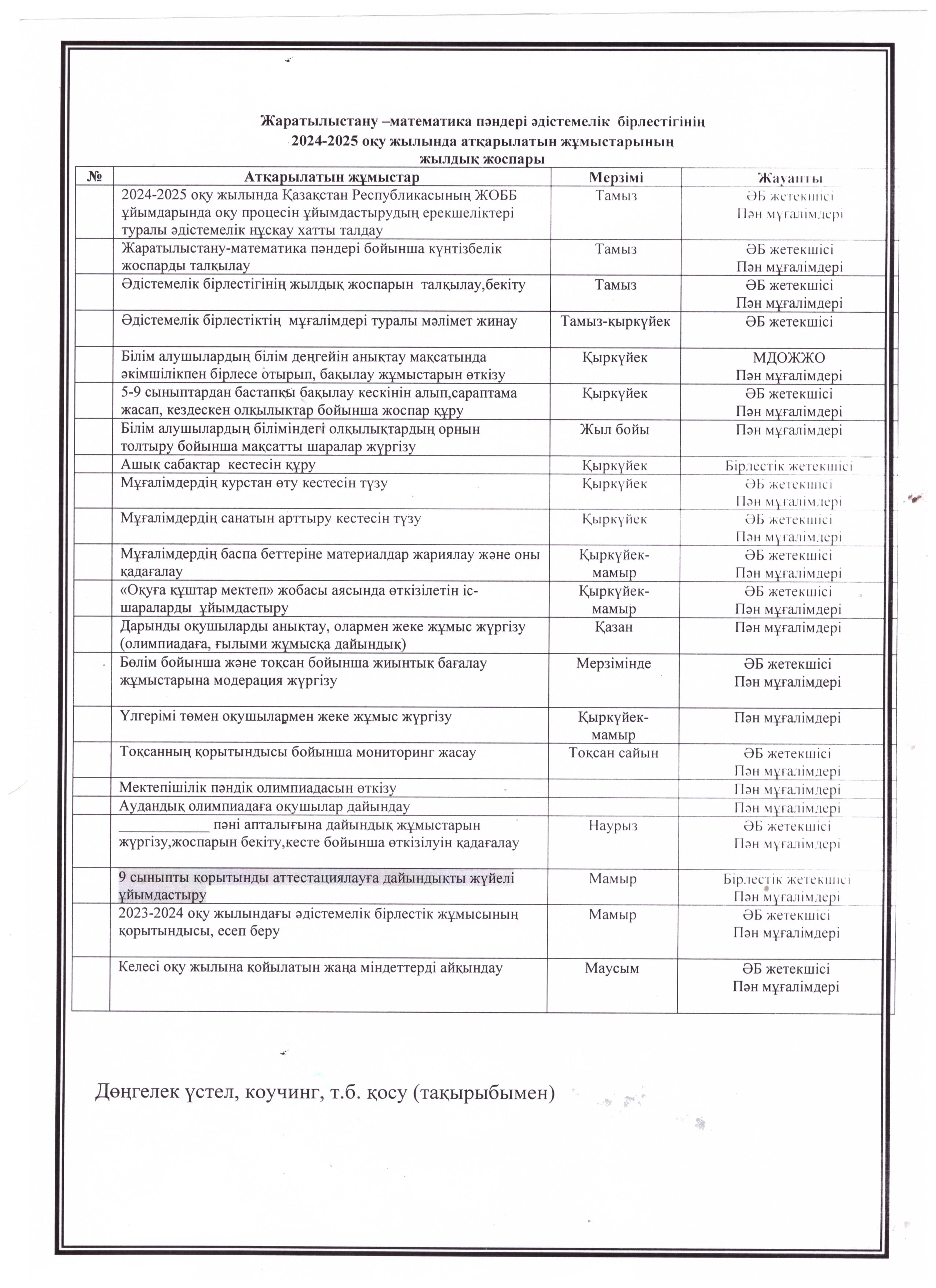 "Жаратылыстану-математикалық бағыттағы пәндер" әдістемелік бірлестігі Мектептің әдістемелік тақырыбы: "білім беру мазмұнын жаңарту жағдайында педагогтардың пәндік-әдістемелік құзыреттілігін дамыту"» |